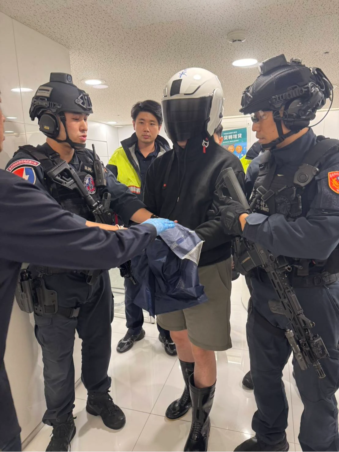 下午3時50分,大批警力制伏歹徒,所幸現場無人受傷。