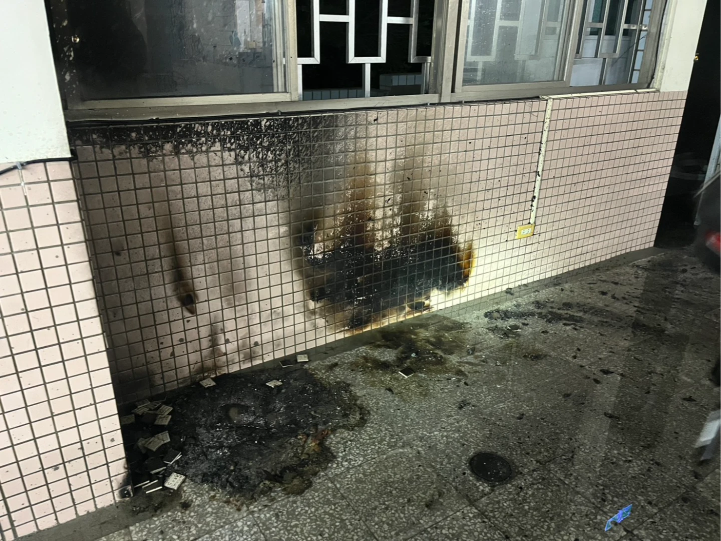 據了解,起火位置靠近教室內側的牆邊,火勢撲滅後,可看到牆壁被燒得焦黑。警方說,詳細起火原因仍待消防局火調科調查。