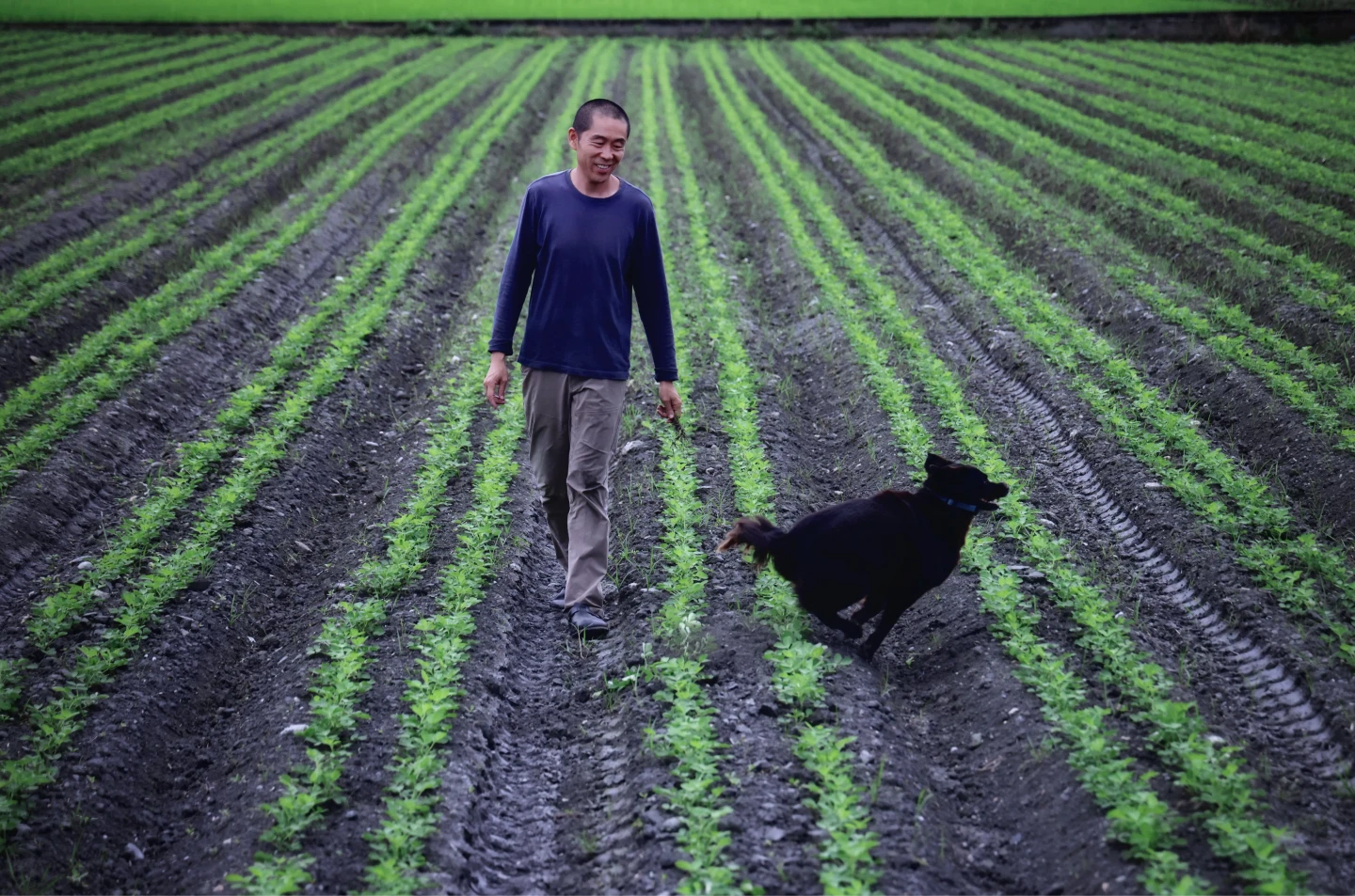 美好花生老闆鍾順龍與他的愛狗一起巡田。林林攝 zoomin