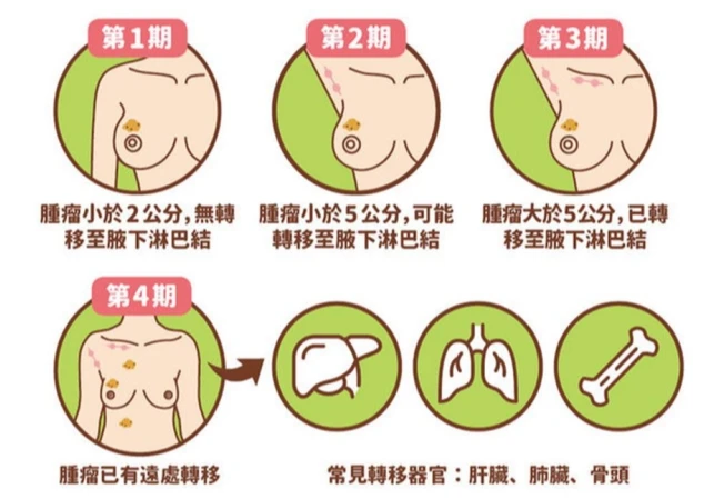 原位癌: 乳房原位癌是一種非侵犯性乳癌,或稱為乳管內乳癌,它是一種癌細胞仍僅限於乳管內增生,而未侵犯基底膜的狀態。它是一種第0期乳癌,因仍在原位,不會轉移,所以預後很好。