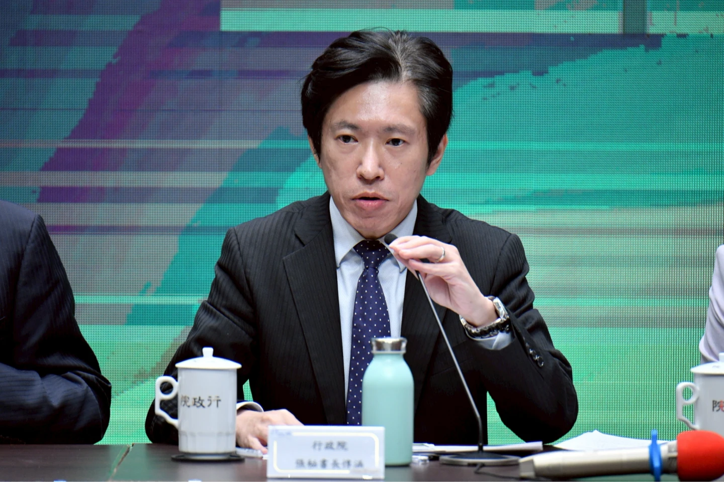 行政院會結束後,卓榮泰率副院長鄭麗君、秘書長張惇涵、財政部長莊翠雲、主計總處主計長陳淑姿等人,出席「院版《財政收支劃分法》修正草案說明」記者會。