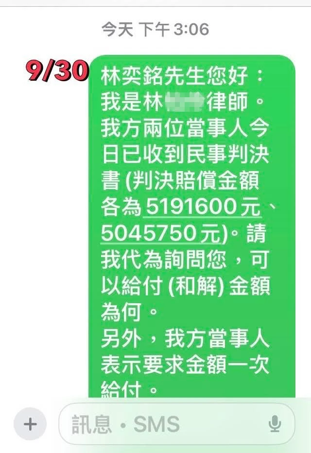 謝小姐指出,民事部分,法院最雖判賠1000萬元。林男期間多次試圖以低價和解,曾提過130萬元、200萬、420萬元,最後惡意脫產,「他根本不委屈啊,他有沒有欠錢心知肚明,他就是一毛都不想賠。」