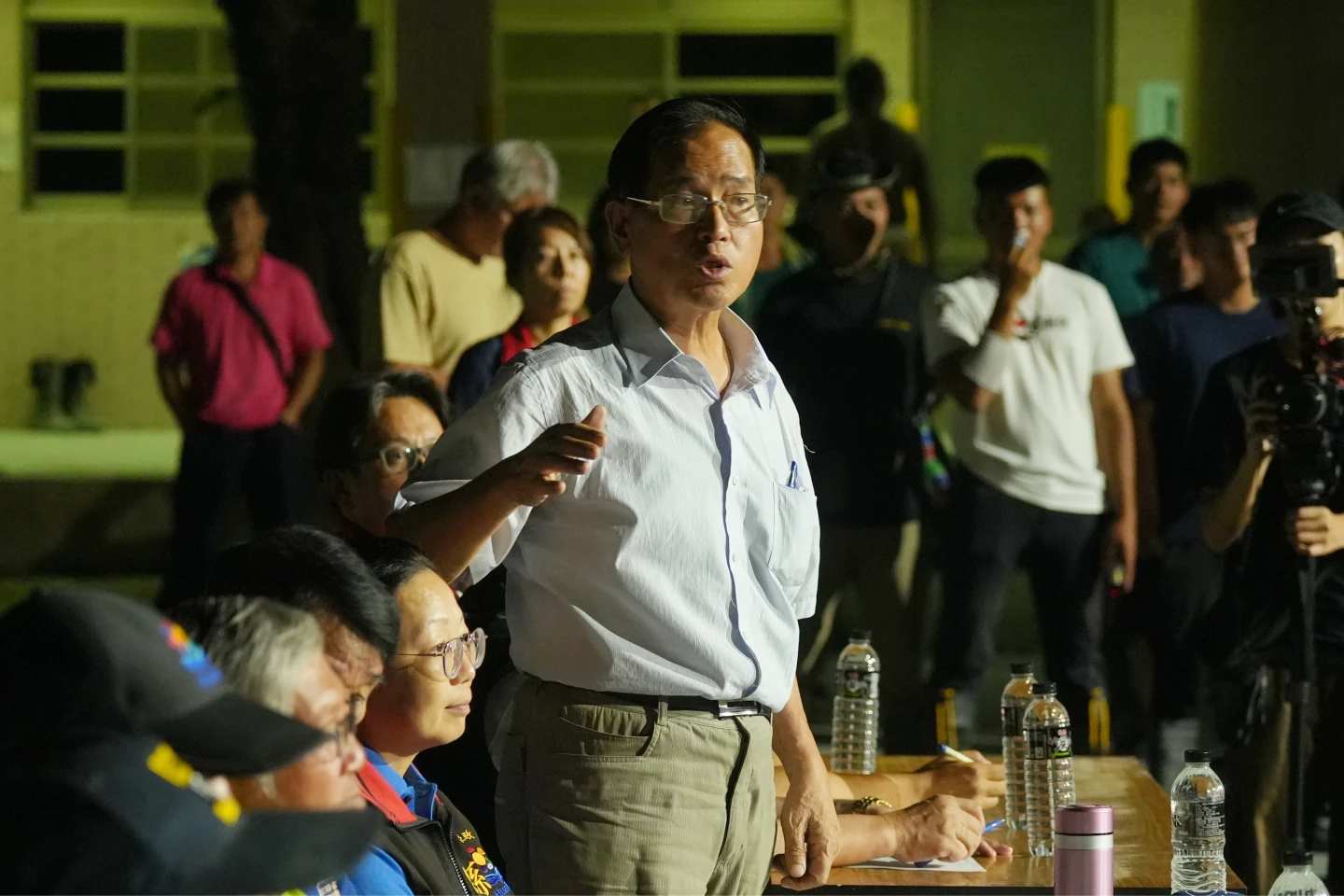 Fata'an部落自救會昨晚在光復國小舉行災民說明會,徐榛蔚跟多位縣府成員到場參與,現場湧入約百位災民齊聚。