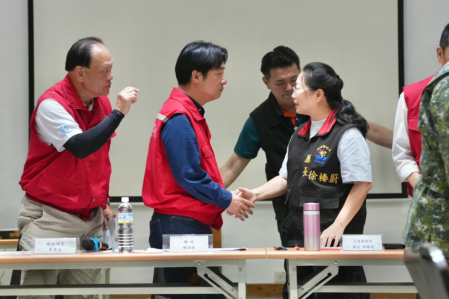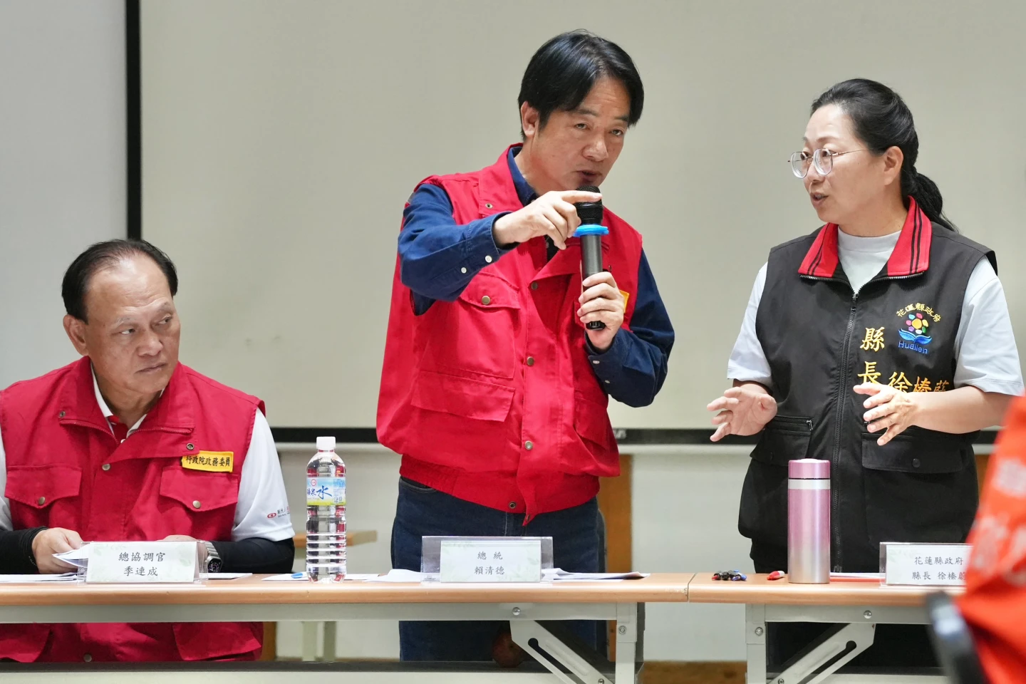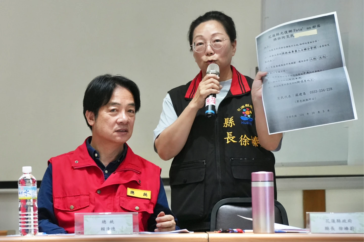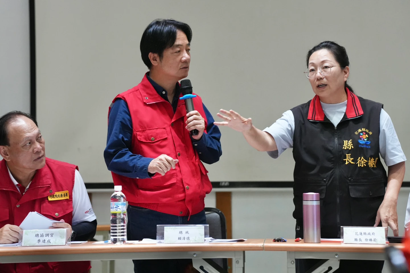 【記者陳力維/綜合報導】總統賴清德今(5)日下午赴中央災害應變中心前進協調所,關心花蓮光復鄉災後處置情形。花蓮縣長徐榛蔚在簡報中首先感謝總統於中秋前夕前來給予前線支持,但開宗明義就強調堰塞湖「潰堤」、「潰壩」導致的災情,盼中央協助地方重生長治久安。立委傅崐萁也感謝總統多來關心,並表示希望所有困難能在中央與地方政府協力之下完成。徐榛蔚與傅崐萁皆向總統強調,這次災害所暴露出的問題,非地方政府能獨立解決,懇請中央主導光復鄉的「大改造」與「大重生」計畫,不僅要長治久安,更要考量農水路、汙水及雨水下水道重置,並認為專屬重建特別條例的設立有其必要性。