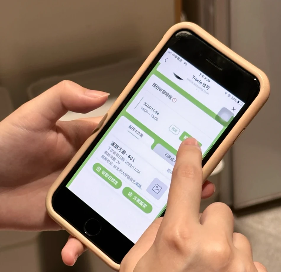 「Tracle垃可」由3名年輕人創辦,想到許多人因為無法配合時間「追垃圾車」,「為什麼倒垃圾不能像叫外送一樣方便?」因此成立,採訂閱制,用戶透過官網或LINE即可預約,選擇收取垃圾頻率。