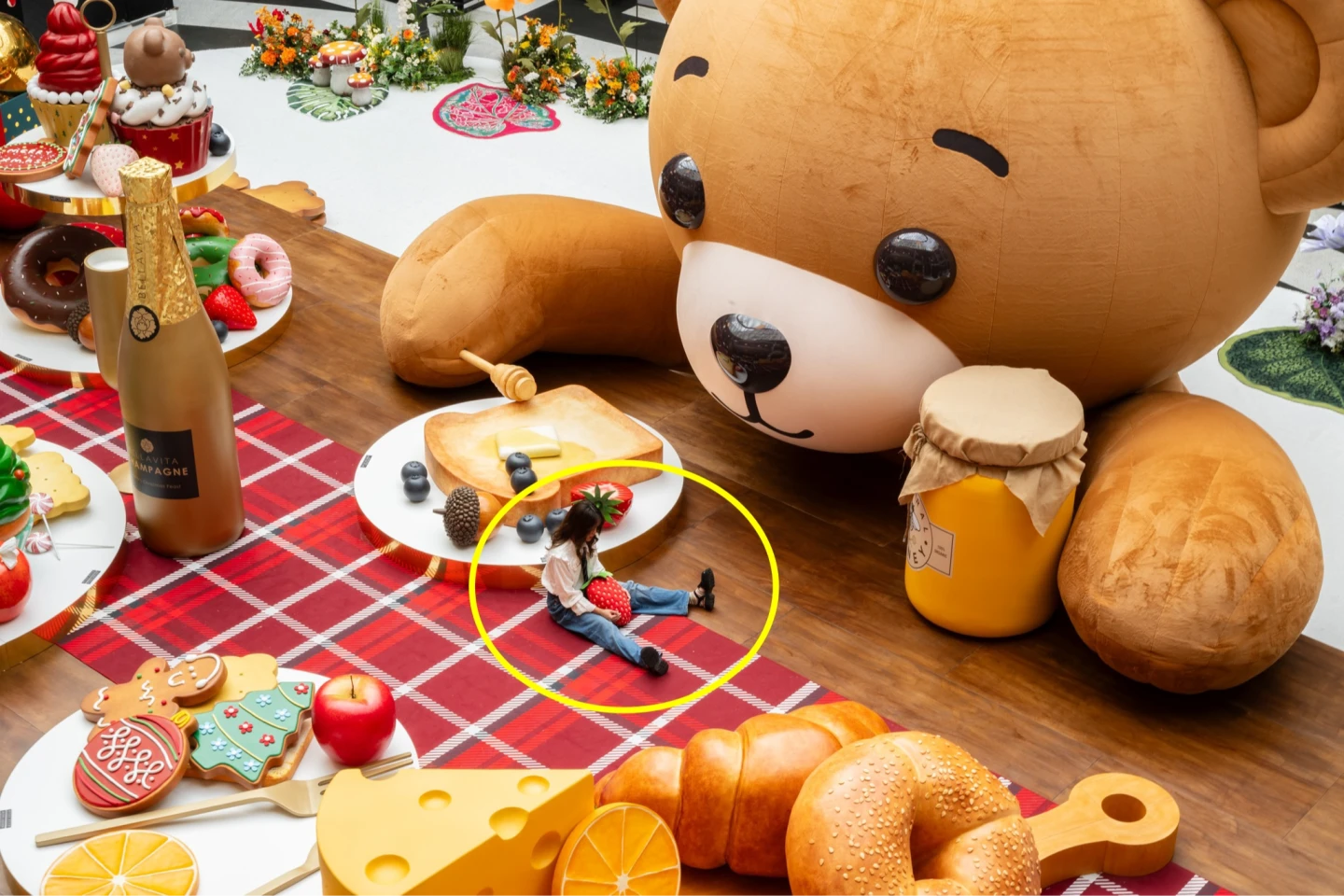 【記者陳力維/綜合報導】耶誕佳節將屆,北市知名貴婦百貨BELLAVITA中庭推出魔幻浪漫的巨型 「Christmas Feast of Wonders 聖誕饗宴」,民眾宛如玩具兵闖入巨人國,置身於巨大可愛絨毛熊Bello Bear、麵包餐點及花卉擺置環抱中,成近日最熱門打卡景點之一。不過自11/28開放參觀才數日而已,卻陸續傳出打卡民眾攀爬、粗心磕碰導致擺飾開始出現缺角破損狀況。還有提醒他人別踩踏的民眾被嗆「關你X事」。BELLAVITA不得已今(12/1)日提出呼籲,請參觀者遵守安全與秩序公約,勿竊取及破壞擺飾,更強調勿過度裸露,情節嚴重者BELLAVITA得請出館外!