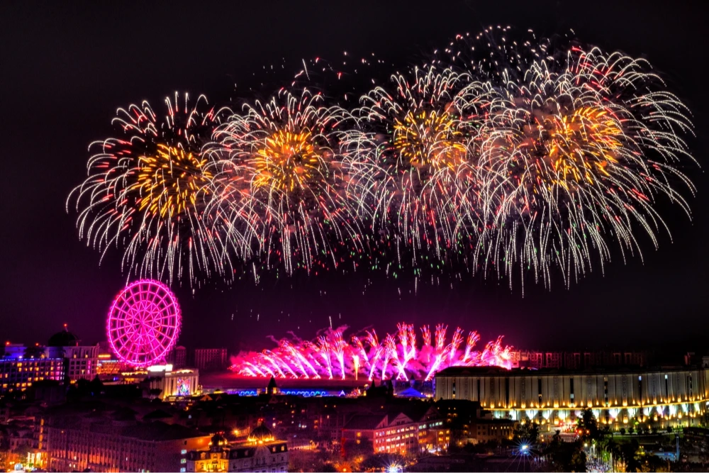 今年跨年煙火挑戰感官極限,由亞洲唯一的「摩天輪主體」施放煙火,結合「舞動無限摩天輪雙輪煙火」、長達1000公尺的「舞擺環山煙火」以及「炫彩摩天輪雷射燈光秀」,打造總長達10分10秒,象徵十全十美的璀璨展演。