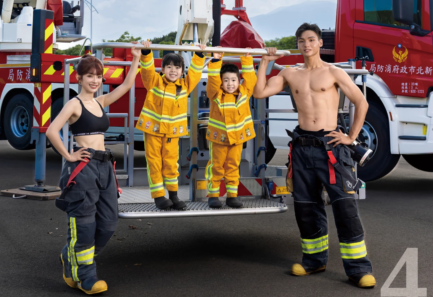 2026新北消防形象月曆以「全民守護‧消防萌力」為主題,邀請小朋友化身小小消防員入鏡,展現溫馨又堅毅的守護意象,從童年的「消防憧憬」到消防精神的「薪火相傳」,象徵使命於世代間的交棒與延續。本次拍攝手法採用消防月曆經典「炸水場景」,讓整體畫面更具張力與層次感。