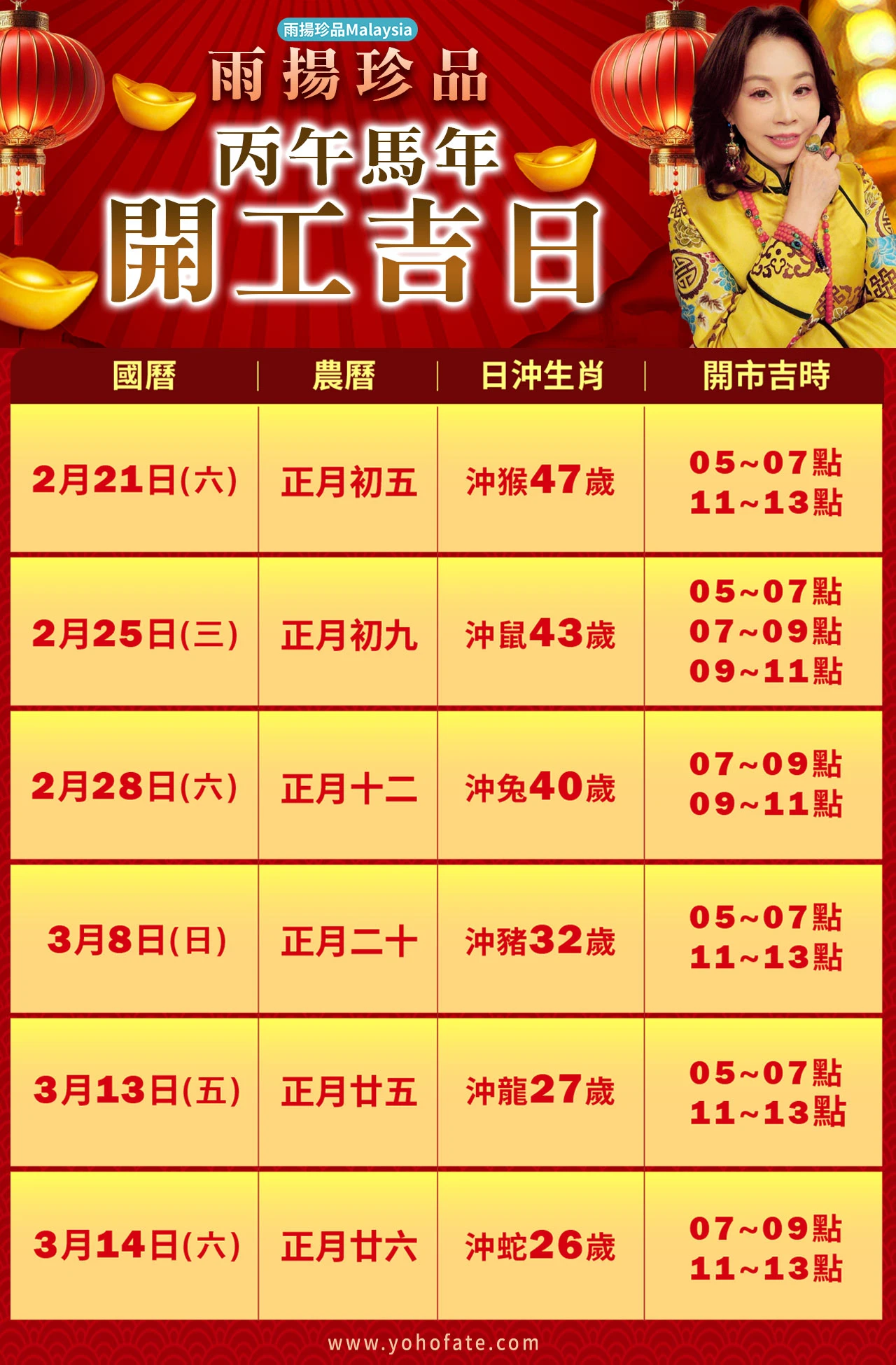 【即時中心/綜合報導】今天是日大年初五(21日),9天連假倒數第2天,準備收心開工了!命理師命揚老師分享,今起至3月中旬有6個適合開工的好日子,也列出當天沖煞的生肖,還有開市吉時等,她提醒,開工儀式最好在當天下午1時前完成「此時陽氣盛,能增進財祿」。(註:知新聞貼心提醒您,民俗說法僅供參考。)