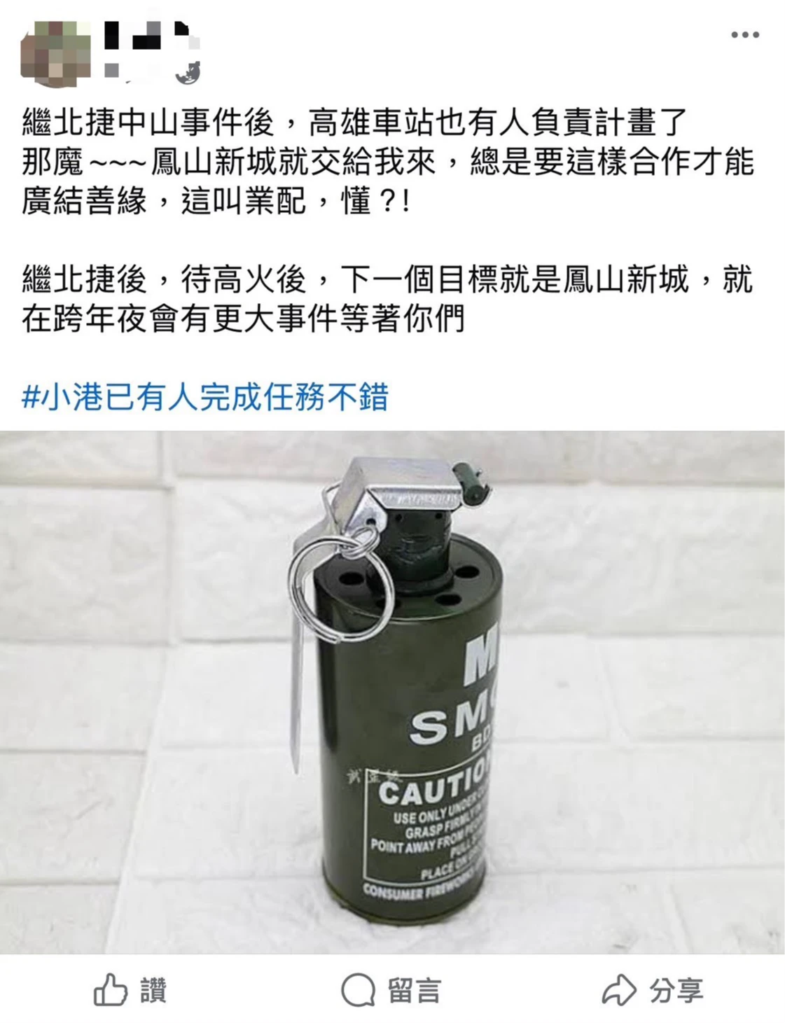 臉書帳號真名發文 自稱操控兇嫌、揚言爆炸行動