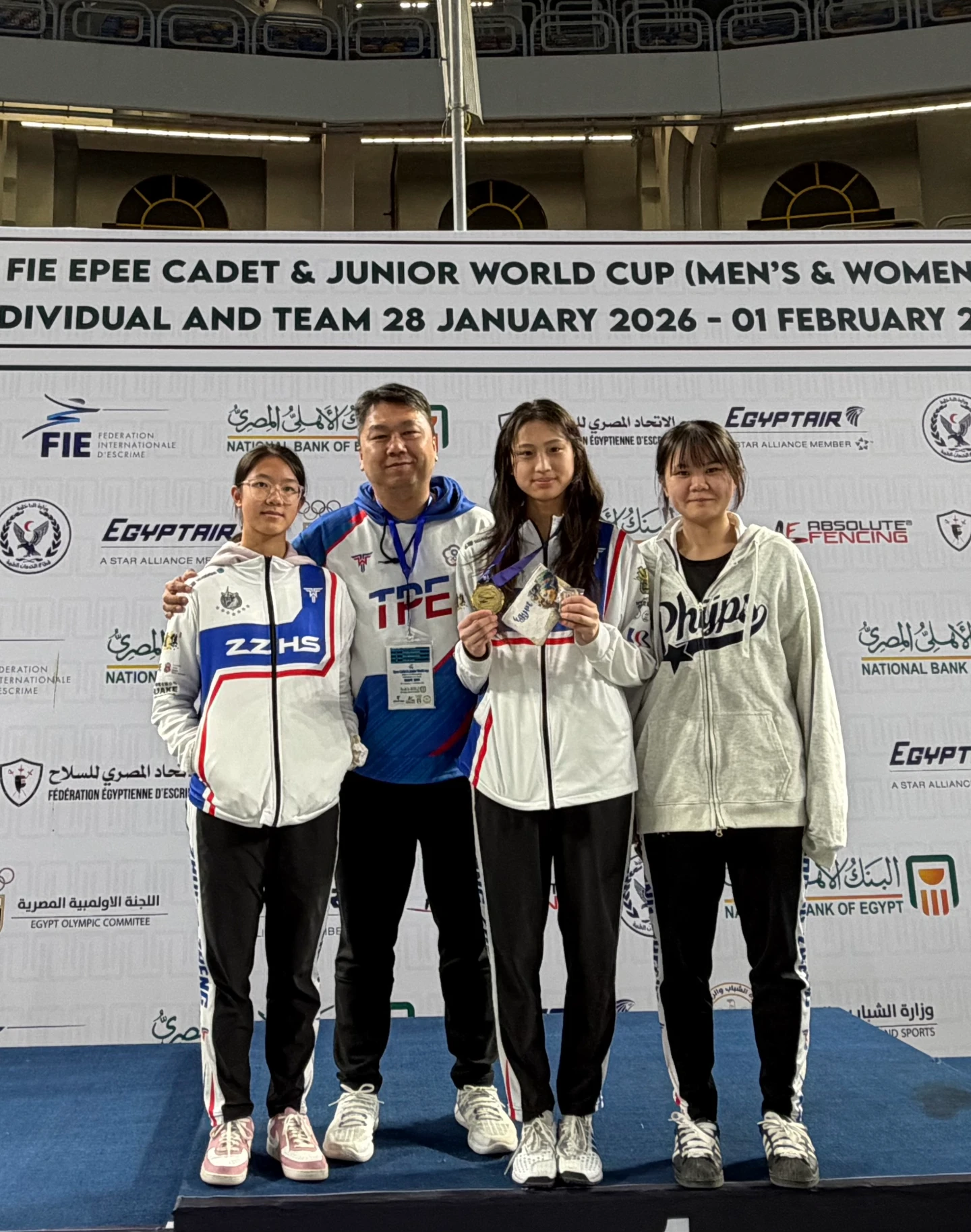 世界擊劍總會青少年世界巡迴賽2025至2026賽季總計有5站,分別為哥斯大黎加站、義大利站、巴林站、埃及站、杭州站,林雨潔在前4站已取得2金1銅佳績。來到最後一站埃及,她在小組賽以第12種子進入單敗淘汰賽,一路過關斬將挺進最終戰。