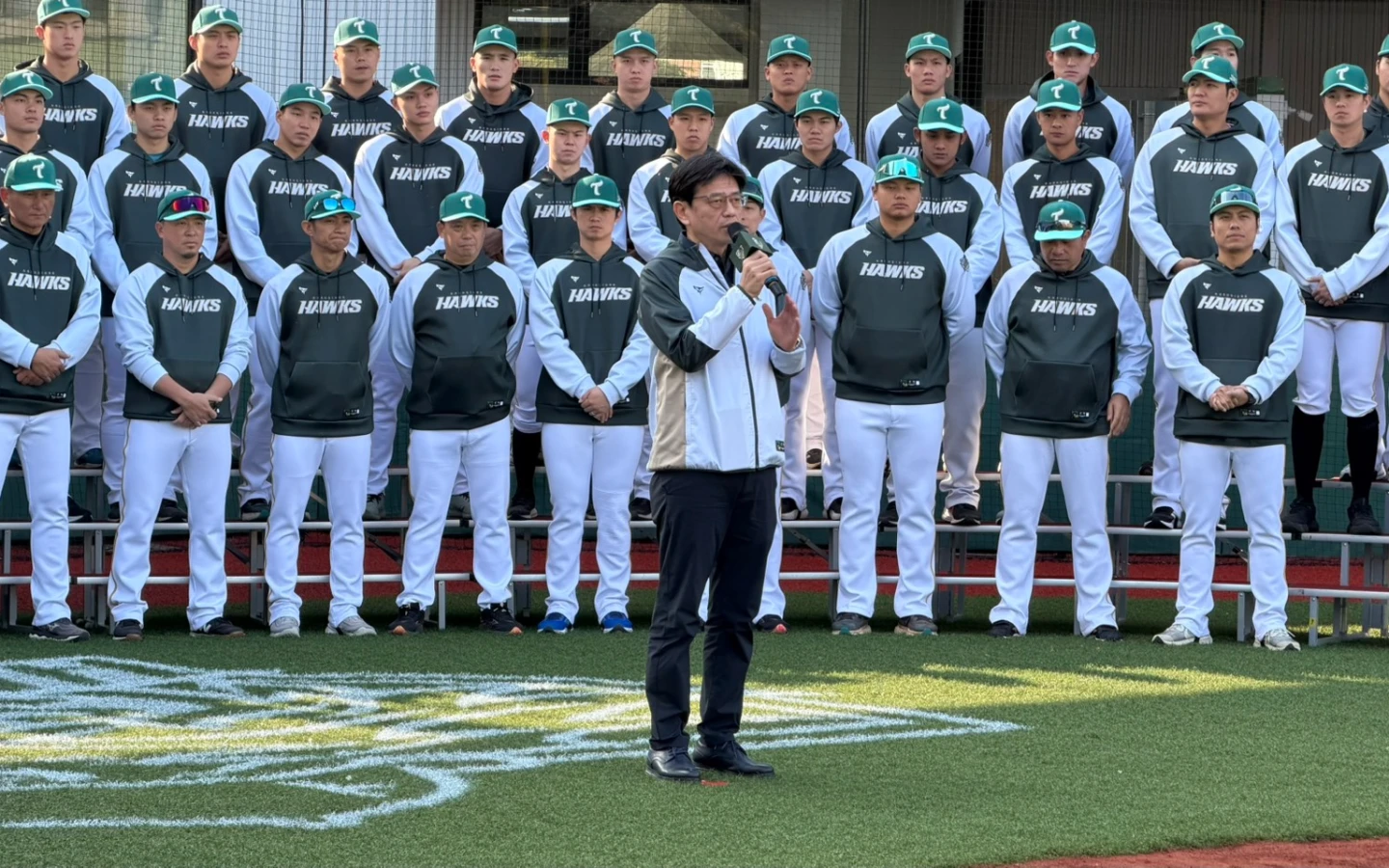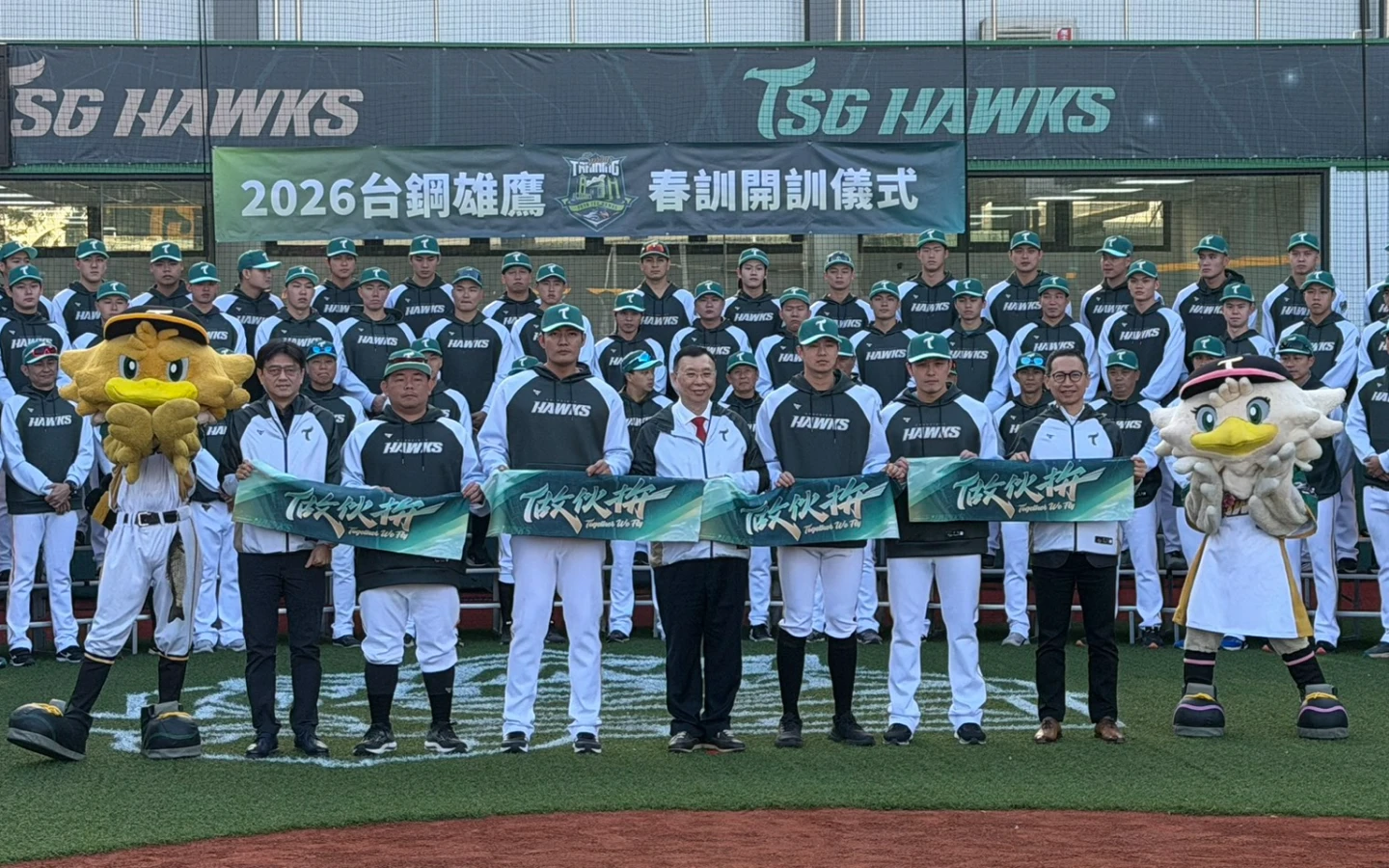 為了備戰新球季,台鋼雄鷹今天起將在全新訓練基地展開春訓,開訓典禮上一一介紹新進成員,一軍總教練洪一中在致詞時說:「在食衣住行的部分球團都把大家照顧得很好,所以選手只要認真練習、努力打拚就好。」