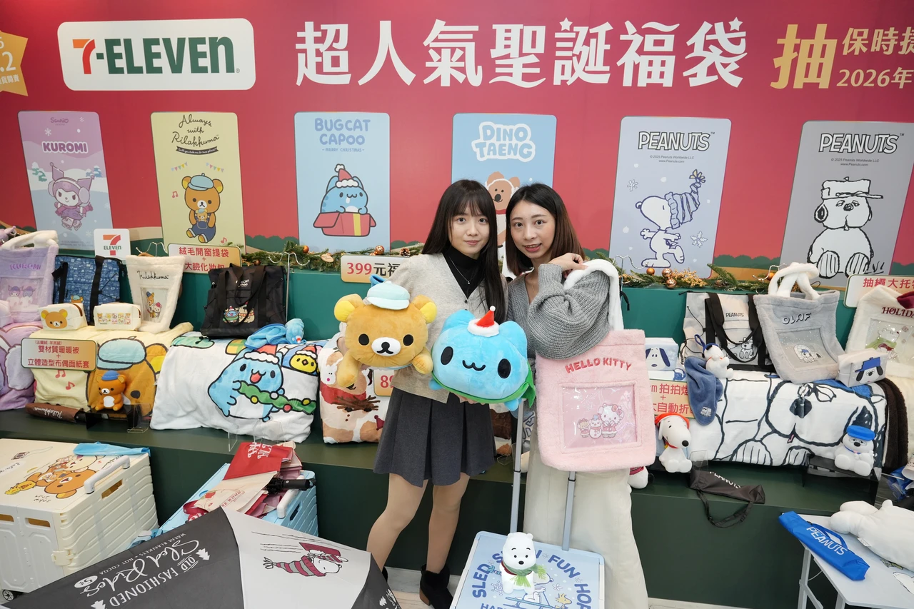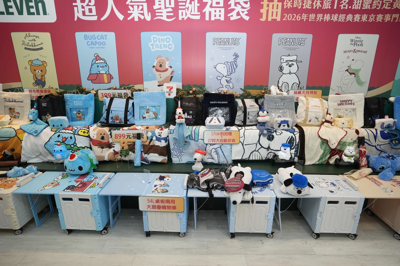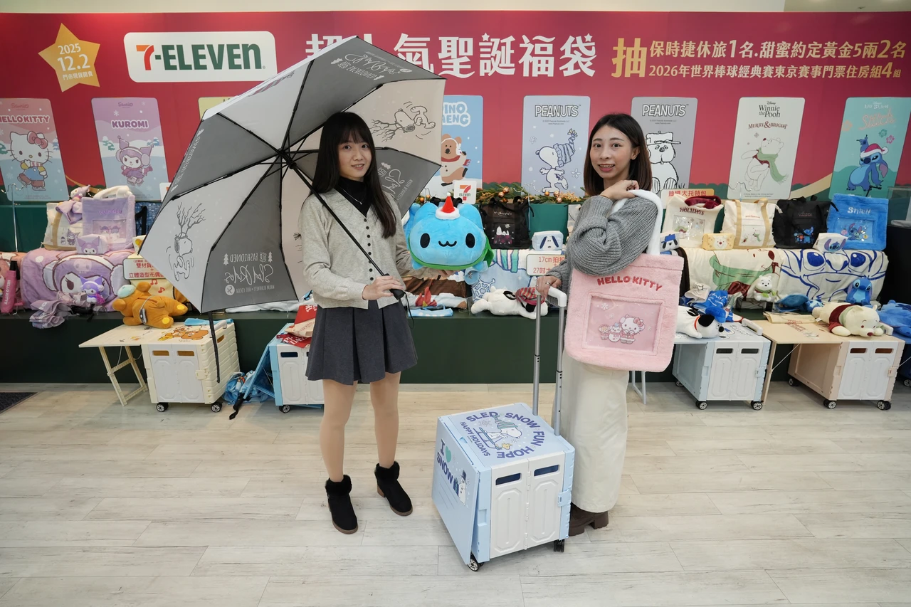 【記者陳怡文/台北報導】7-ELEVEN聖誕福袋邁入第4年,與去年相同請來10大IP助陣,高達50款選擇,比去年多上8款,399元至2490元不等,全台限量13萬個,獎品總價值超過1250萬元,因應現代人喜歡裝飾配件等公仔,近幾年讓痛袋(透明收納袋)在年輕人間造成風靡,這回也特別推出痛袋結構福袋,其中門市開賣9大IP共45款福袋,線上APP為1款IP共5款福袋,除了有序號可抽1台343萬元保時捷1輛、2名5兩黃金價值164萬元,還可以在用2點小七點數抽價值86萬的WBC東京賽事門票+住房共4組,1人中獎2人同行,注意,有18款福袋點數僅1點,等於要買2組才能抽WBC。