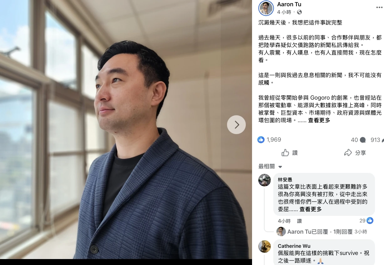 這場針對前員工的司法戰,歷經檢調搜查與多次不起訴,最終因陸學森離職,在潤泰集團的主導下才由Gogoro與Aaron Tu達成全面和解。走過這段無情耗損的Aaron Tu在文末感嘆,單靠個人魅力、媒體造神與過度包裝的品牌想像,無法讓一家企業走得長久。