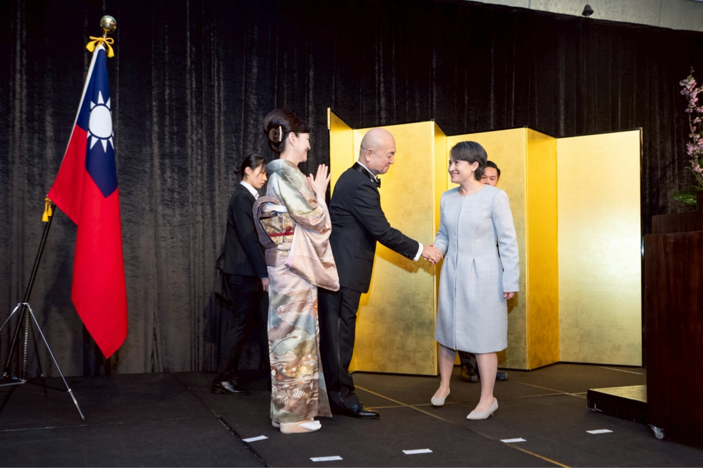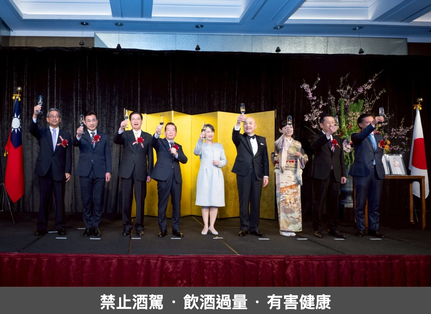 蕭美琴與現場貴賓一同祝酒,遙祝日本天皇政躬康泰,並盼台日友誼長存。