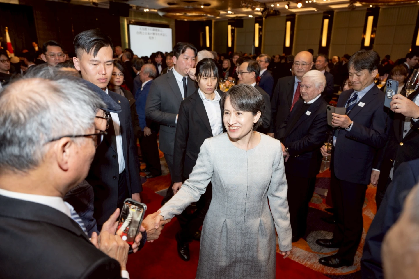 酒會中,蕭美琴代表總統賴清德及台灣人民,向日本政府及國民致上最誠摯的祝賀。她致詞指出,台日情誼早已超越地理距離,昇華為心靈的緊密相依,無論是民調顯示的高度互信,或是去年突破700萬人次互訪,證明雙方情誼的深厚。