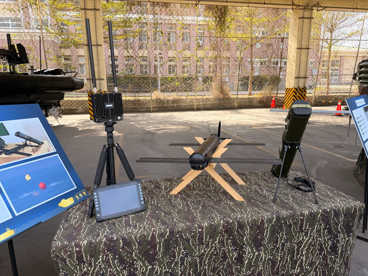 「勁蜂1型」攻擊無人機由中科院所研發,被譽為「台版彈簧刀」無人機,可由單筒發射或多聯裝發射鄉發射,目標辨識、俯衝攻擊,縮短決策到打擊時間,達成「即發即中」,它的特性包括筒射起飛,具有導引點、任務預劃導航能力,並且裝被可見光、紅外線攝影機。