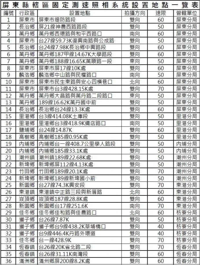 【記者王志弘/屏東報導】藝人陳為民日前批評台灣測速照相密度高是「國恥」!面對警政署公布屏東縣測速桿數量138處為全台第三,屏縣警局今天澄清,其中僅36支有裝主機持續執法,平均約40公里1支;爭議最多的屏鵝公路,142公里僅4支實際啟用,與外界「每2、3公里1支」的印象明顯不符。今年取締件數已大幅減少,觀光人潮不減反增。