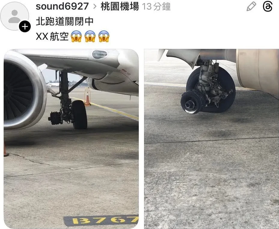 除了今日的行李系統事故,桃機昨(8)日下午也發生嚴重的飛安驚魂。南韓廉價航空德威航空(T'way Air)一架編號TW687班機,由濟州島飛抵台灣,於下午3時55分降落時發生右側主輪脫落的離譜意外。該班機輪胎脫落後在跑道上滾動,甚至超越機身,所幸機上人員平安,航機隨後安全停靠。受此影響,桃機北跑道緊急關閉約100分鐘進行巡檢與碎片清理,導致機場暫時只能單跑道運作。