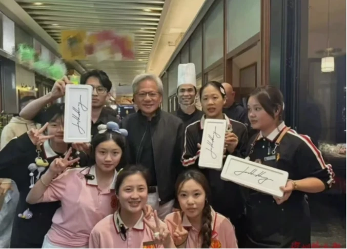 離店前,黃仁勳應店員請求合影留念,並在餐盤上簽名,期間他多次稱讚「深圳的牛肉很新鮮,很好吃」,並表示將再次光顧。該店值班店員表示,當日下午6點曾有顧客提前預訂包廂,黃仁勳一行人抵達後並沒有特殊需求,舉止均較低調。