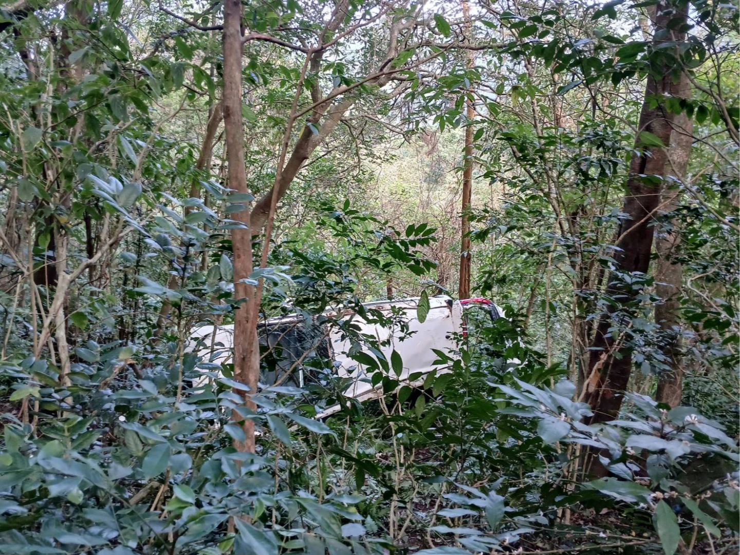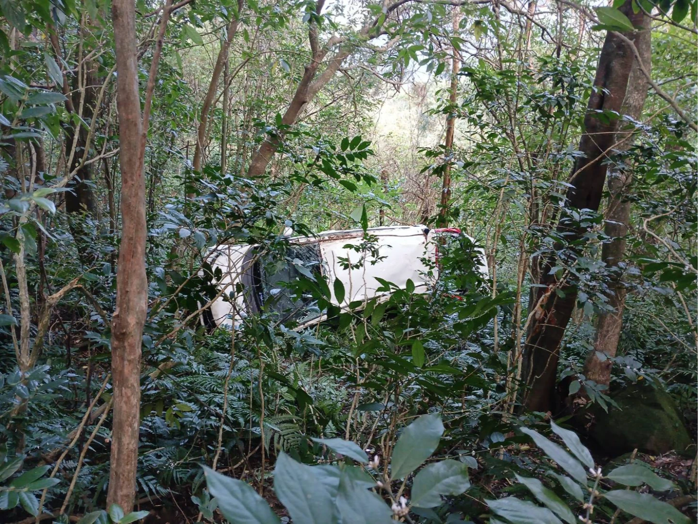 據悉,許姓女子(51歲)今天中午12時14分左右,獨自開乘一輛轎車,沿著新北市瑞芳區106線道往瑞芳方向直行,途中行經106線道74公里處,疑因煞車失靈,許女人車直往路緣衝去,當場衝落山谷卡困車內。