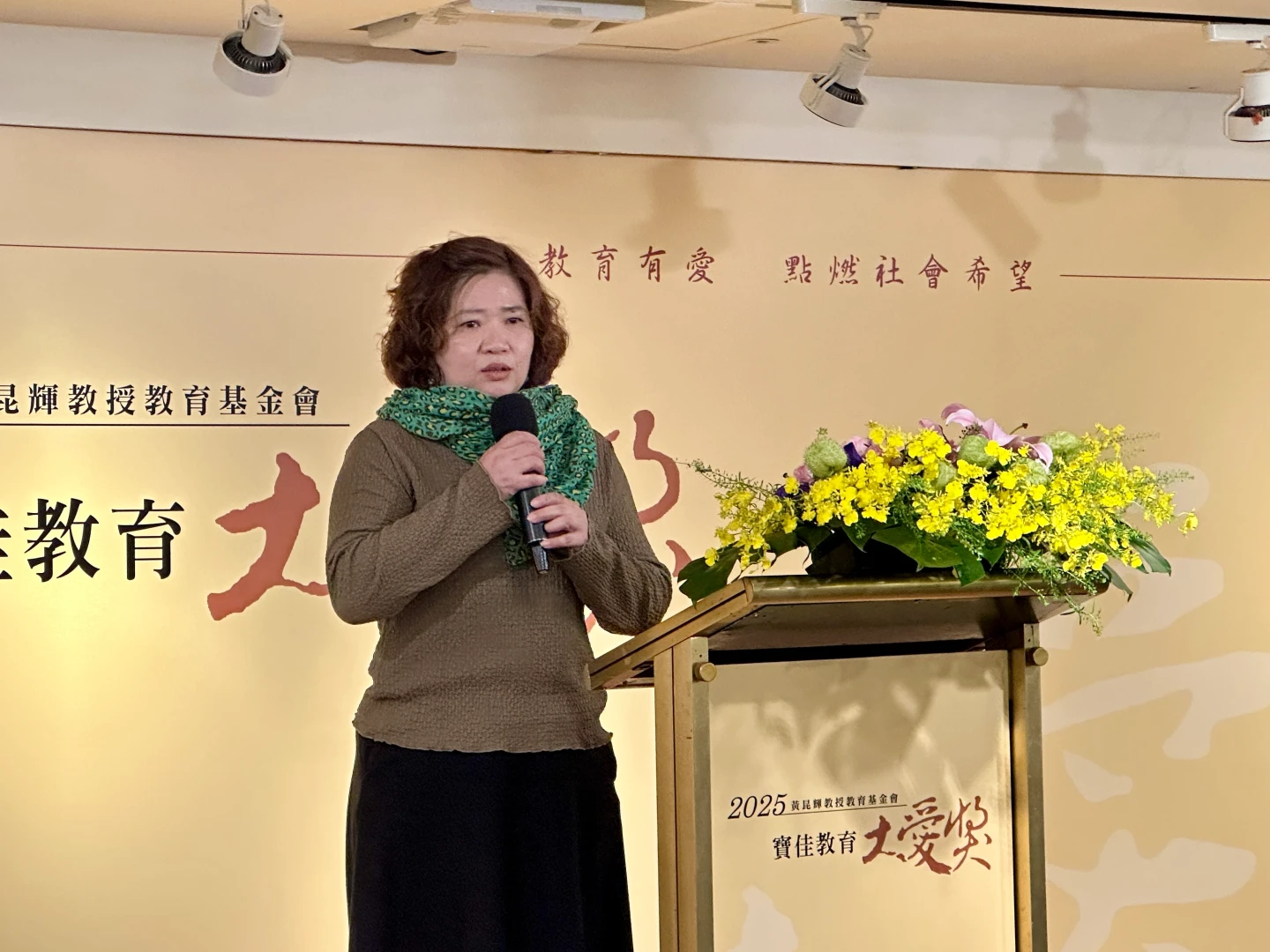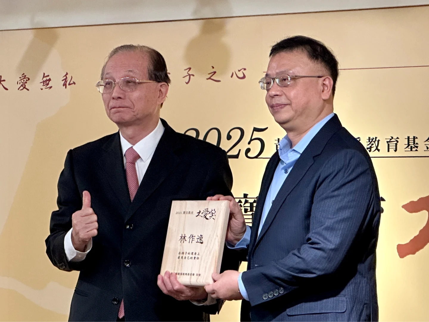 【記者王良博/台北報導】黃昆輝教授教育基金會今(6)日舉行「寶佳教育大愛獎」頒獎典禮,選出12位大愛教師。得獎者之一的新北市成福國小主任林作逸,是犯罪被害人子女,家庭背景奠定他的教育初心,幫助、陪伴很多學生。他分享,一位因家庭因素而情緒低落、自傷的學生,他靠著個別談話、找到學生的美術天份,並修復家庭關係,使學生情緒穩定,也找到美工設計的職業目標。