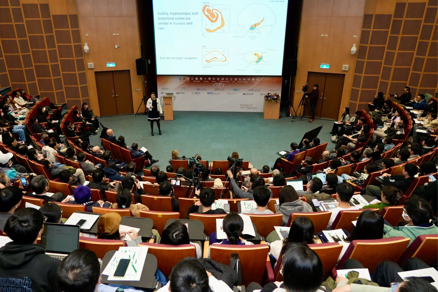 2014年諾貝爾生醫學獎得主梅–布麗特.莫瑟(May-Britt Moser)2/9於台大演講。台大提供 zoomin