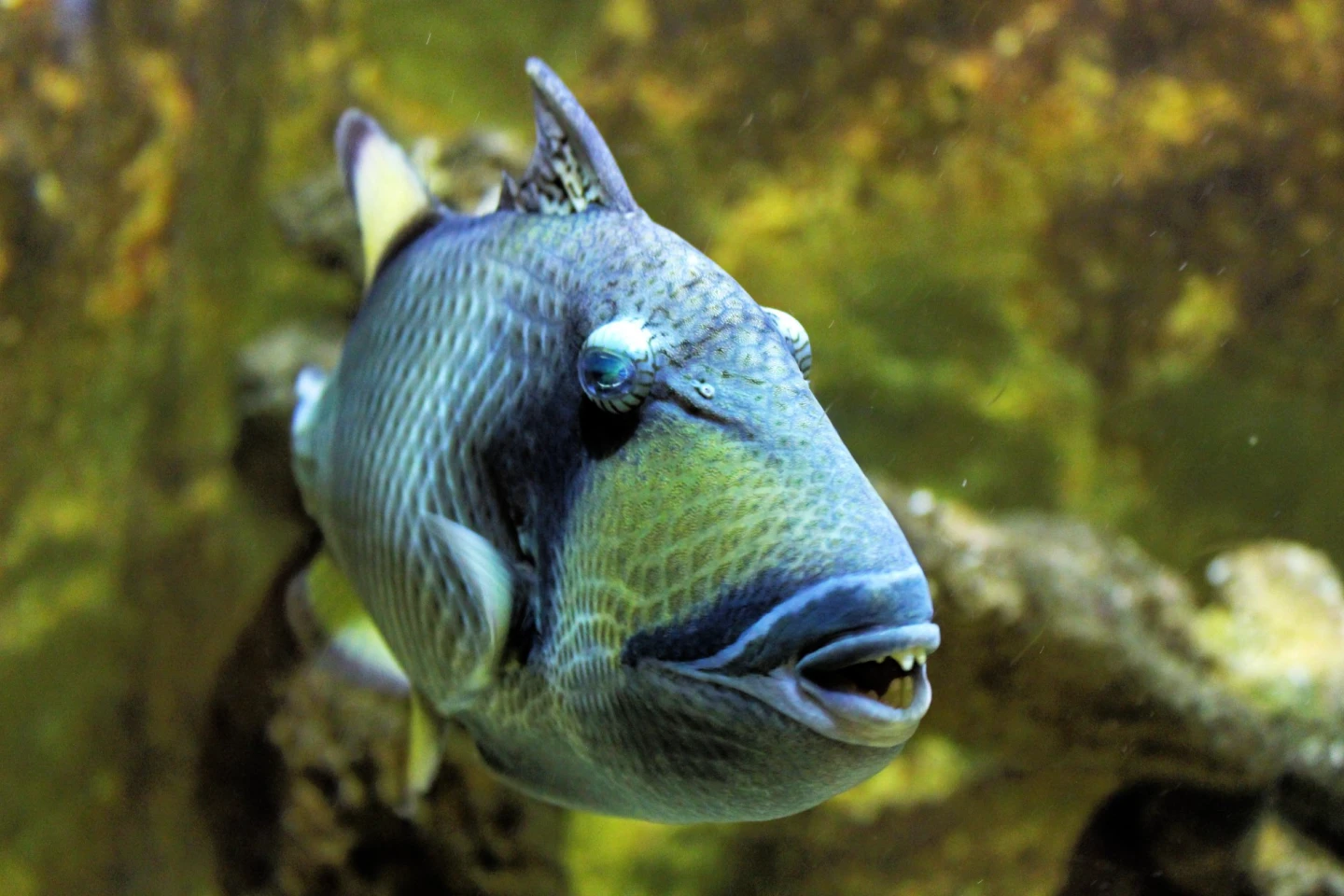 「泰坦砲彈」生存技能滿點,遇到危險或休息時,會用背上和腹部的硬棘把自己卡在礁石中,怎樣都不飄走。牠的咬合力爆表,堅硬如海膽、蛤蜊、螃蟹殼,甚至珊瑚上的藻類,通通都可以輕鬆咬碎,因此可別輕易惹牠。