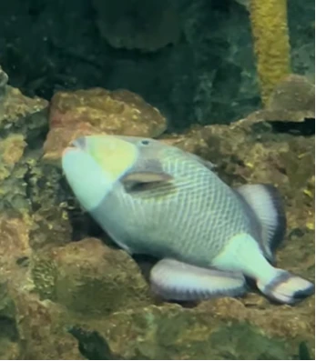 「泰坦砲彈」因為厚唇,酷似美國前總統「歐巴馬」,獲得遊客們的青睞,是探險島水族館內最具海洋明星臉的明星。