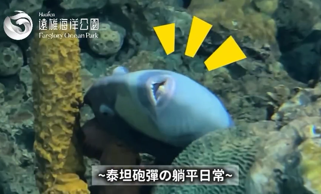 遠雄海洋公園日前貼出「泰坦砲彈」的躺平日常,影片中可見,看似凶猛的「泰坦砲彈」窩在一角放空躺平,甚至嘴開開露出牙齒,配上「晚安曲」讓人噴笑。
