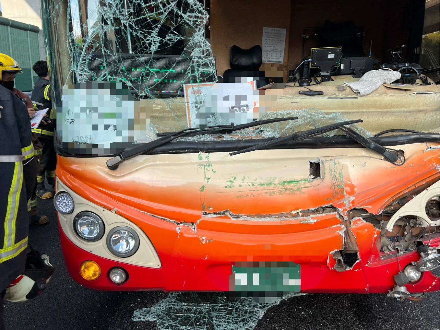 國道一號遊覽車追撞大貨車!擋風玻璃全碎 28人受傷送醫