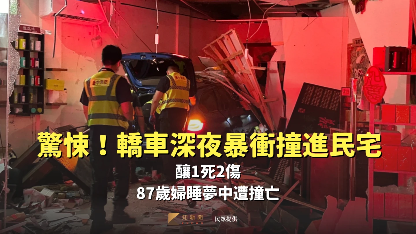 驚悚!轎車深夜暴衝撞進民宅1死2傷 87歲婦睡夢中遭撞亡