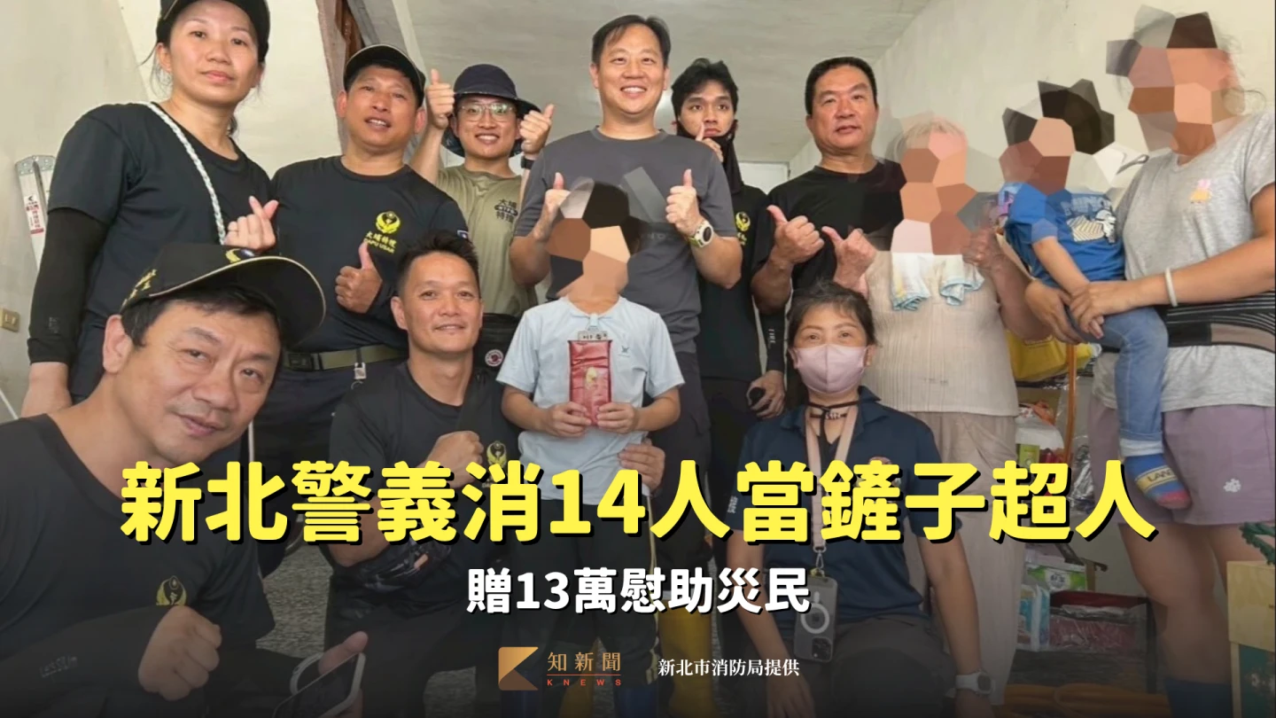 有片|雙十國慶獻愛災區!新北警義消14人當鏟子超人 贈13萬慰助災民