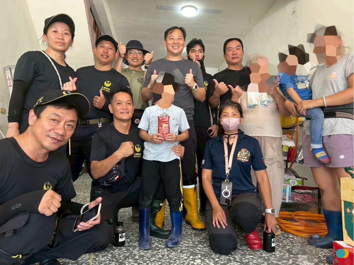 【記者曾伯愷/新北報導】花蓮光復洪災釀18條人命,新北市消防局特搜大隊大埔分隊長陳豐仁,第一時間奉派前往災區。救援過程得知一名年邁老婦喪子,與媳婦合力撫養兩名稚孫,現又遇洪災沒了家園,生活陷困。陳豐仁與義消分隊長林茂全頗為感傷,返隊後警義消共募集13萬慰問金,於雙十國慶14名警義消重回災區贈與老婦,還挽袖當起鏟子超人,讓老婦其家人相當感謝。