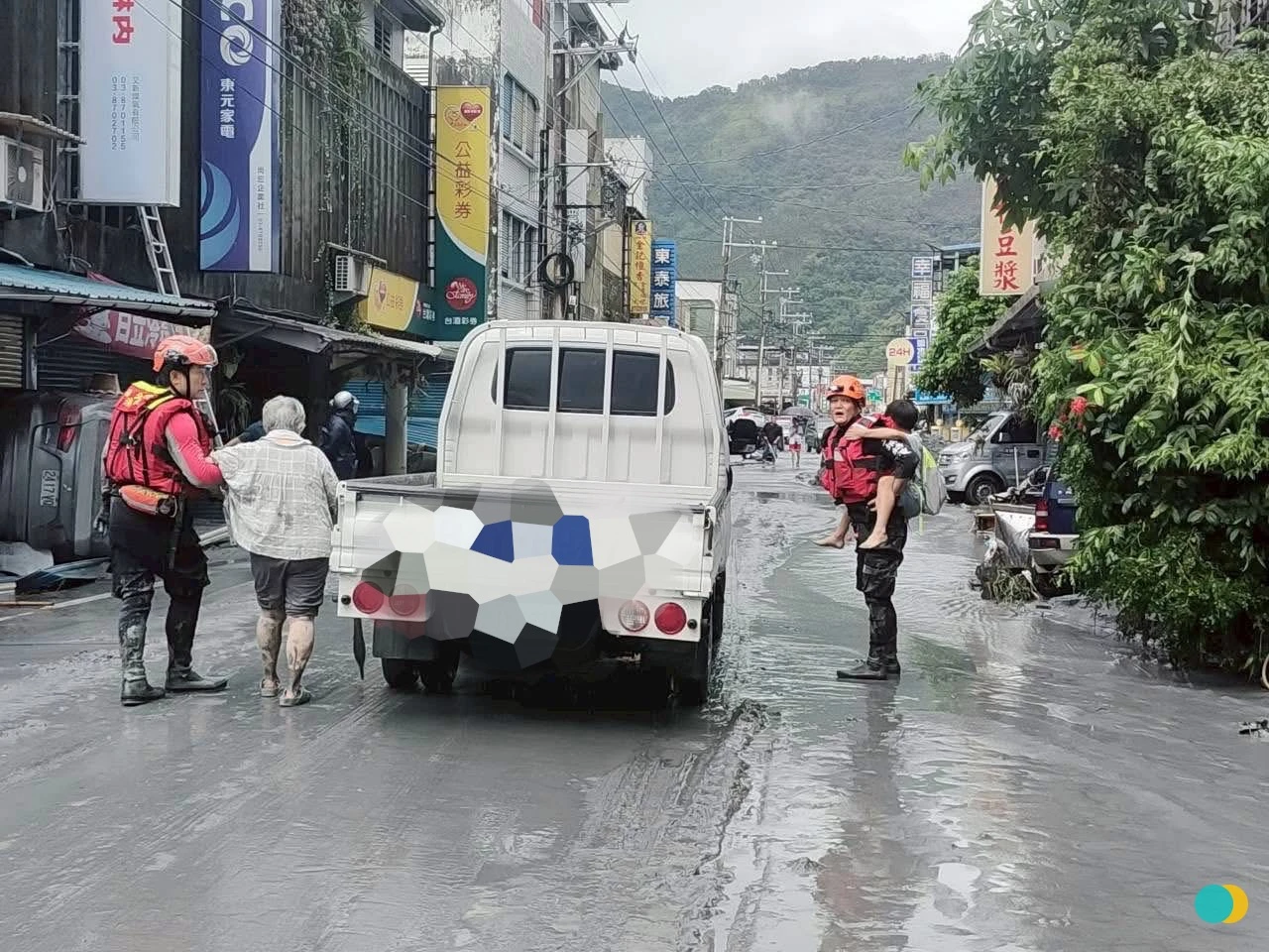 9月24日早上,他們協助阿嬤一家四口撤離,準備護送兩大兩小到大進國小安置。由於滿地泥水難以行走,義消周易杰從屋內背著老婦幼孫來到勘災車,隨後其他警、義消則一路護送老婦及媳婦坐上勘災車,前往大進國小安置。