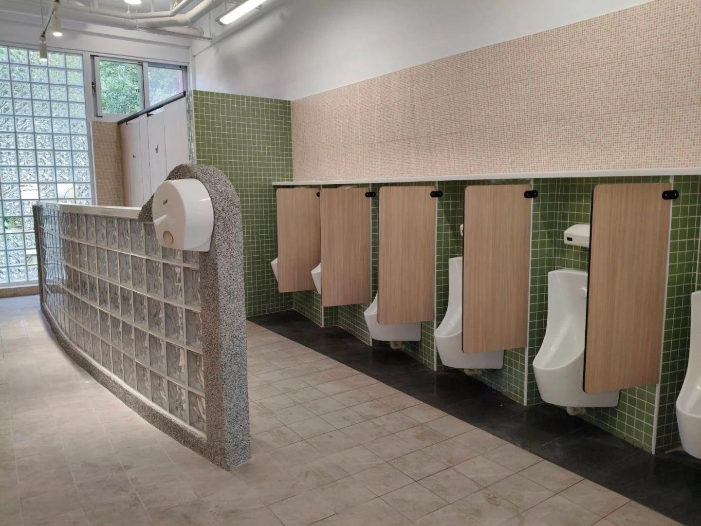 基隆市百福國中結合美感教育將廁所改造,透過空間更新,引導學生在日常中進行學習與思考。學校透過設計相關課程,引導學生從使用需求出發,共同討論廁所空間的功能與美感,並以小組形式交流設計想法,運用3D建模呈現構想。整體設計兼顧美學、實用與永續概念,優化隱私與安全,打造明亮、友善且具教育意涵的如廁空間。
