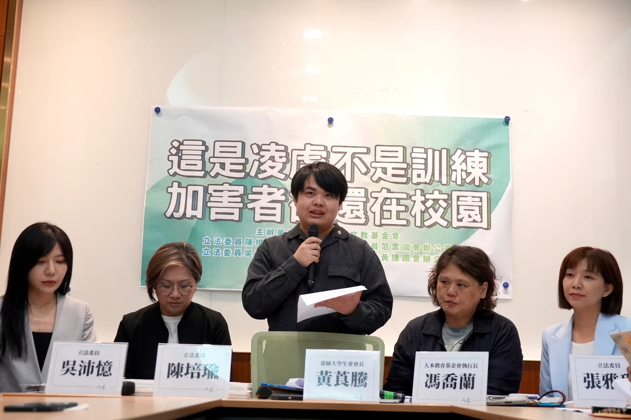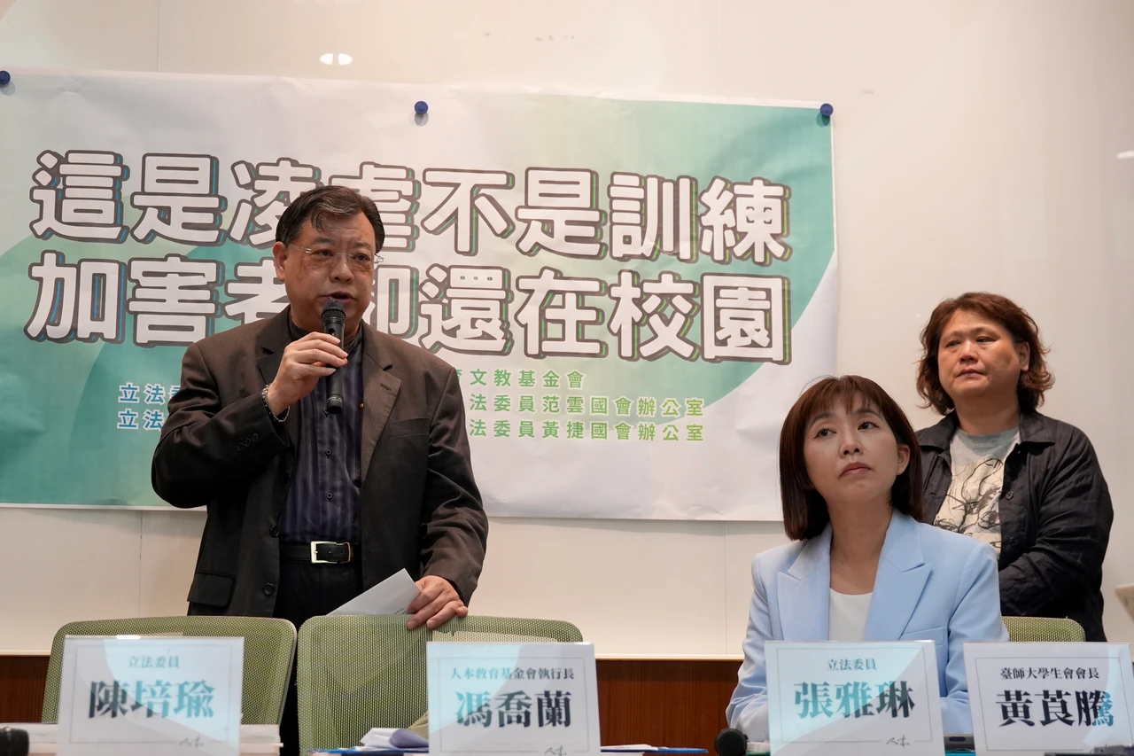 人本教育基金會今(21)日與立法委員陳培瑜、范雲、吳沛憶、黃捷、張雅琳辦公室,以及台師大學生會共同舉行「『這是凌虐不是訓練』加害者卻還在校園」記者會,台師大主秘林安邦表示,校方對這類案件一直都是零容忍、毋枉毋縱的積極態度,這是學校始終的一個態度,並於去年8月配合教育部進行調查。