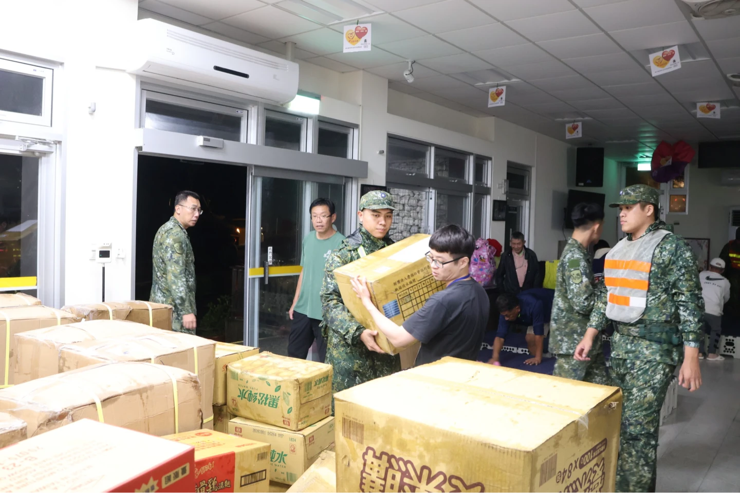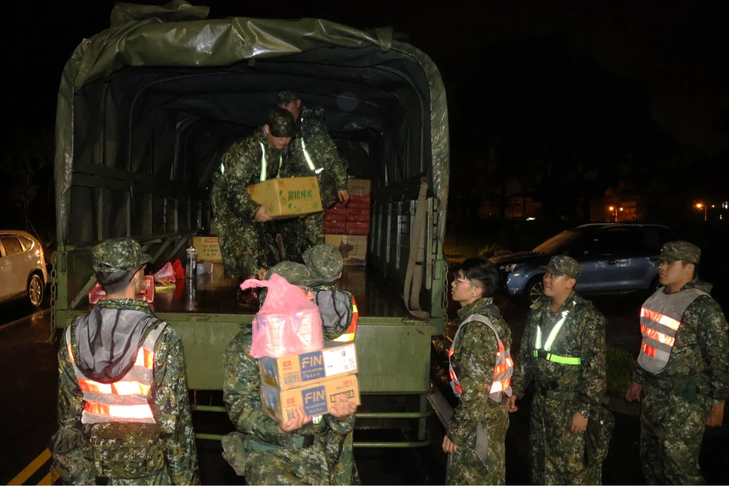 由於逾百名蘇澳民眾被收容在鎮公所及蘇西活動中心,今凌晨𝟮點多,陸軍步兵第一五三旅開著兩輛軍卡,載送睡袋、泡麵、衛生紙及乾糧等物資送到活動中心,為災民救急。