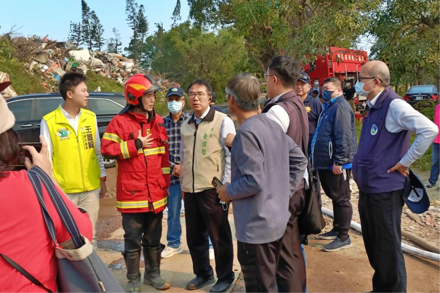 立委賴惠員趕抵現場關切,發文指出,火勢真的非常驚人,一路燒到像一個足球場那麼大;這些災後廢棄物原本預計明年4、5月才能清運完工,「地方擔心的事情真的還是發生了。」