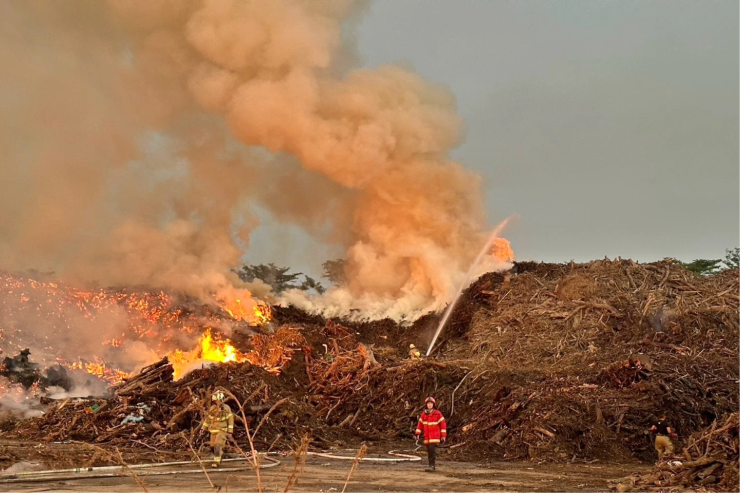 據了解,這處烏樹林暫置場自今年7月風災後堆積大量廢棄磚瓦、木材,原本在明年5月就要歸還給海軍建置飛彈基地,但礙於經費,去化清運進度落後,令地方早憂心會爆發火災,疑因內部產生沼氣,加上日夜溫差大,導致自燃火燒山。