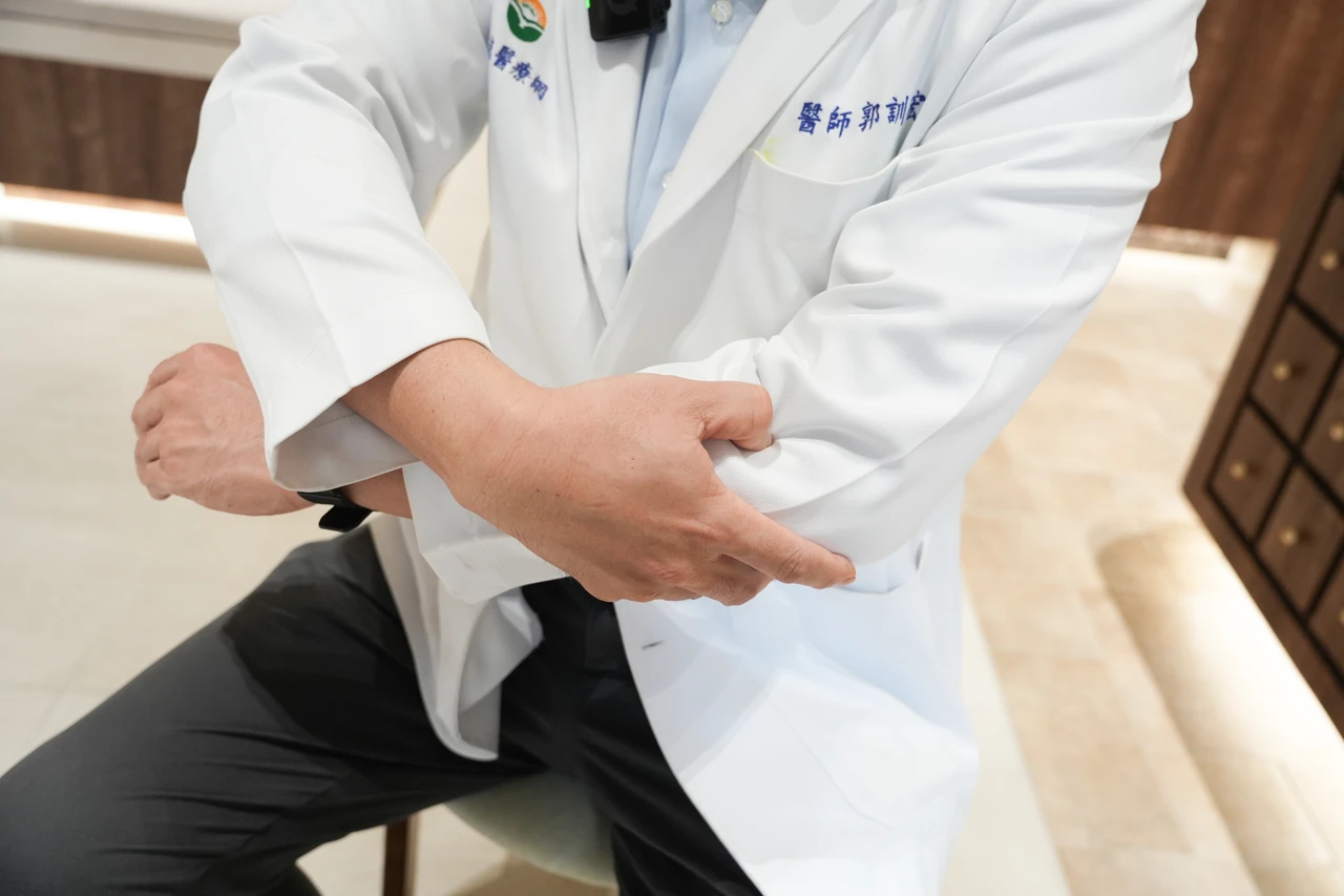 此外,還可以按摩「手三里穴」。郭訓宏說,這個位置在手部屈起時,手肘橫紋下約3個手指頭寬的地方,按壓時會有明顯痠感,特別適合肩頸緊繃、甚至有點上背痛的時候,按壓後動一動、轉一轉,就發現肩頸鬆開了。