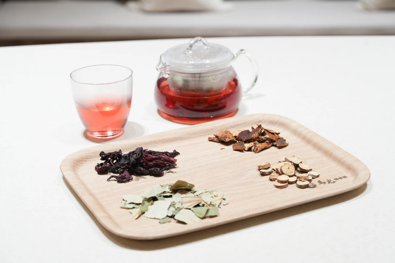 郭訓宏說,「洛神荷葉茶」很適合日常消食、去濕,可以準備洛神花、荷葉、陳皮和甘草等4味藥材。至於各藥材的特性,洛神花可以生津止渴,讓身體不要這麼燥熱;荷葉可以幫助身體代謝,有痰濕體質的很適合;陳皮可以幫助消化、行氣、理氣;甘草則用來中和洛神花跟陳皮的酸。