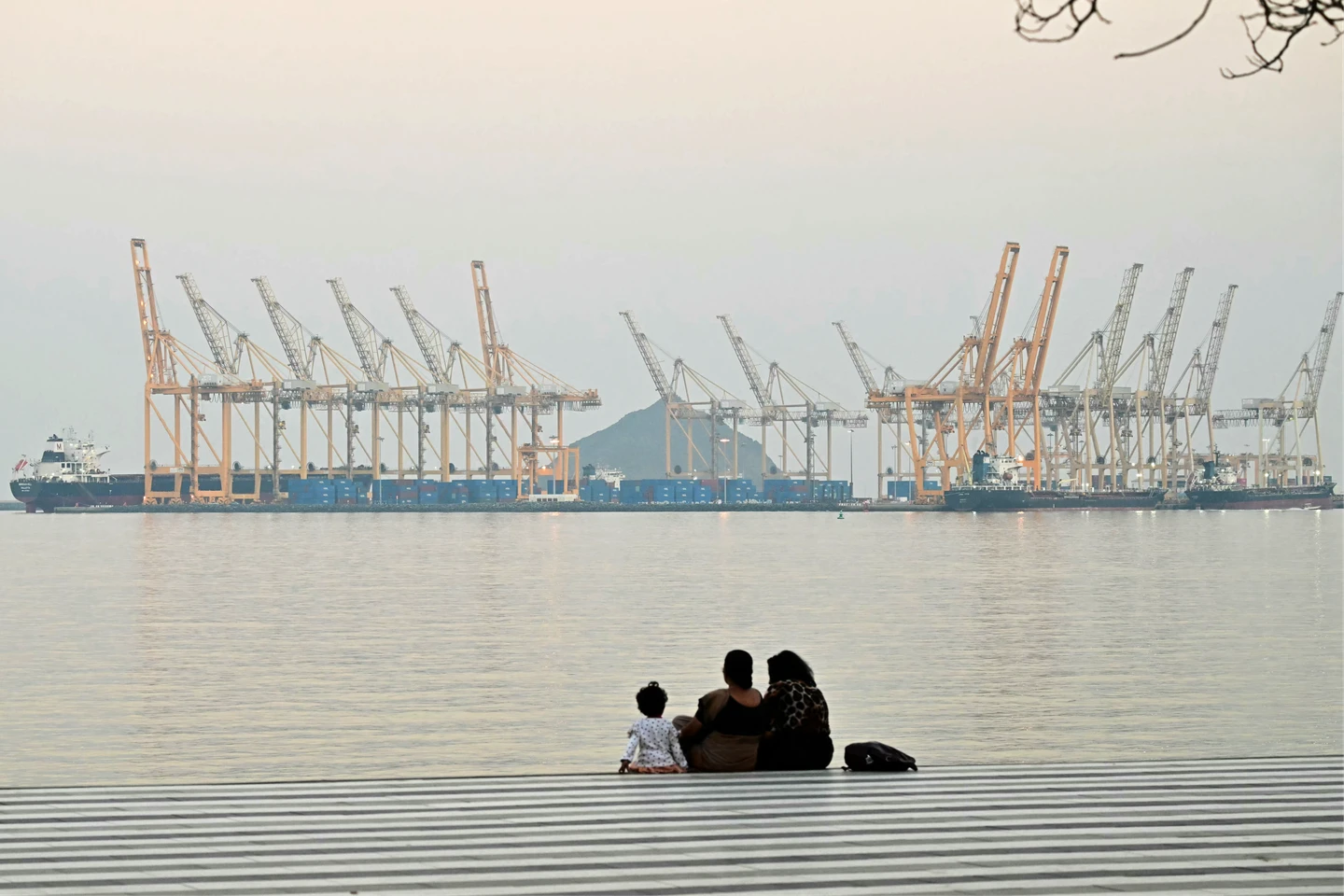 圖為民眾2月25日坐在阿拉伯聯合大公國濱臨荷姆茲海峽南側的富查伊拉港(Fujairah)碼頭。法新社 zoomin