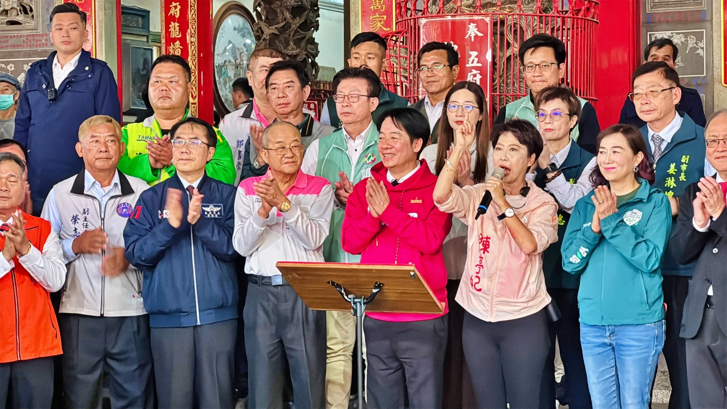 陳亭妃全程都站在賴清德身邊,致詞感謝賴總統在台美關稅中守住台灣最大利益,也當眾為賴清德叫屈,批評藍白無理阻撓預算,呼籲鄉親要當總統最堅實後盾。