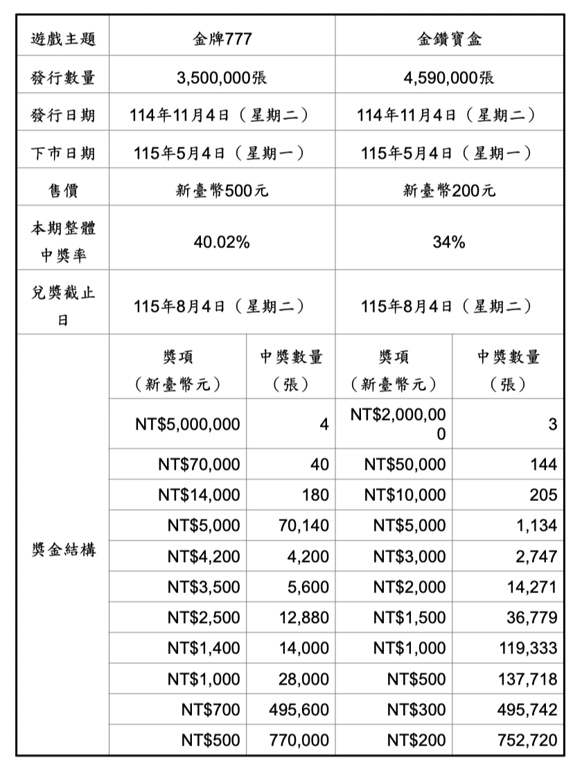 頭獎500萬元!台彩推2款新品刮刮樂 總獎金逾18.2億元