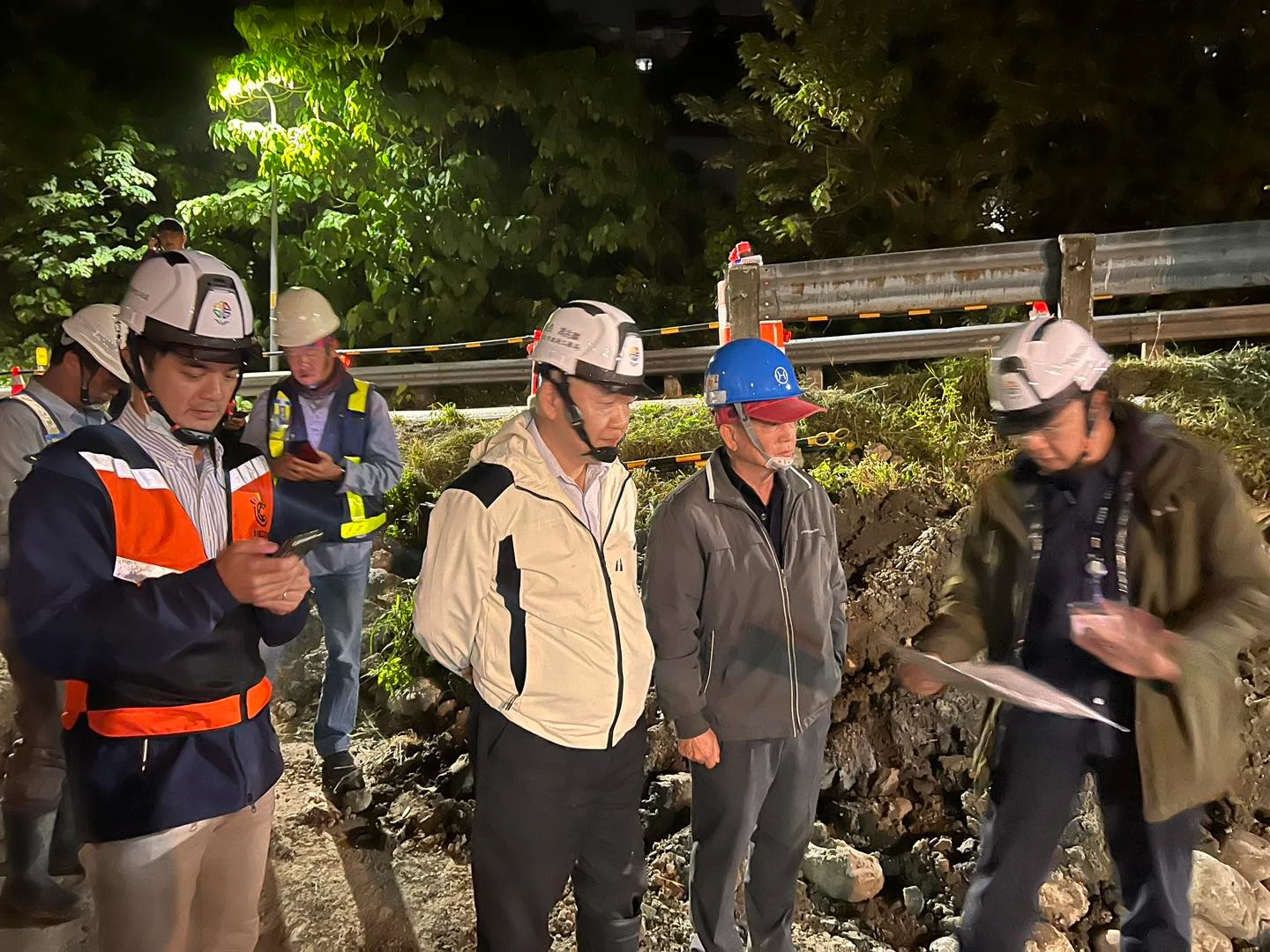 淡北道路施工造成幹管遭挖損破裂,台水淡水所於11月27日13:48 接獲通報後,立即前往現場勘查、通知修護廠商進場搶修,並同步調整系統降壓供水。