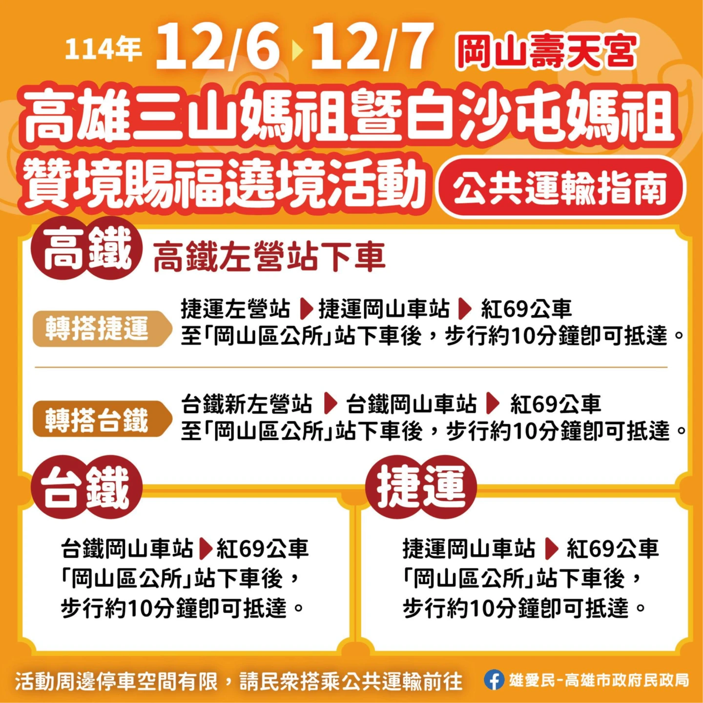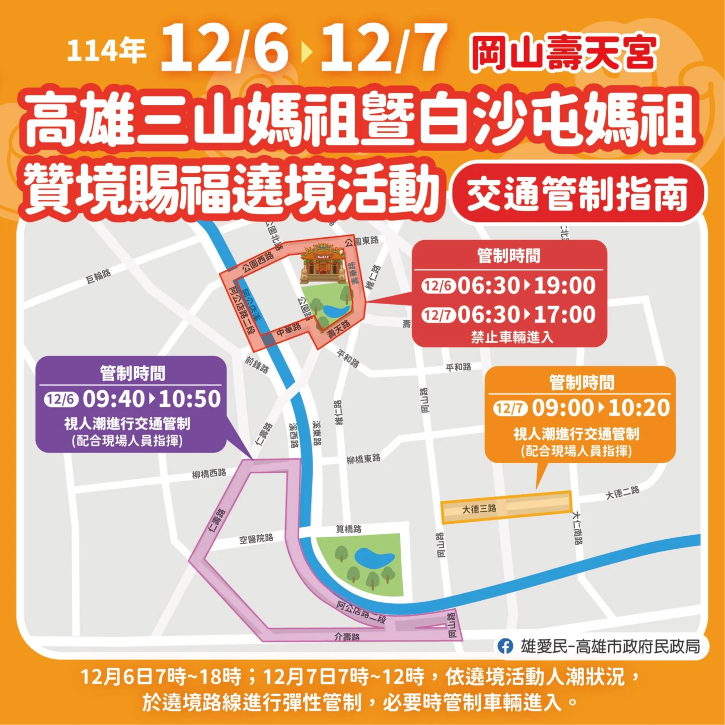 遶境活動還有2天,高雄市政府發布交通管制資訊,請用路人務必提前改道並配合現場人員指揮。