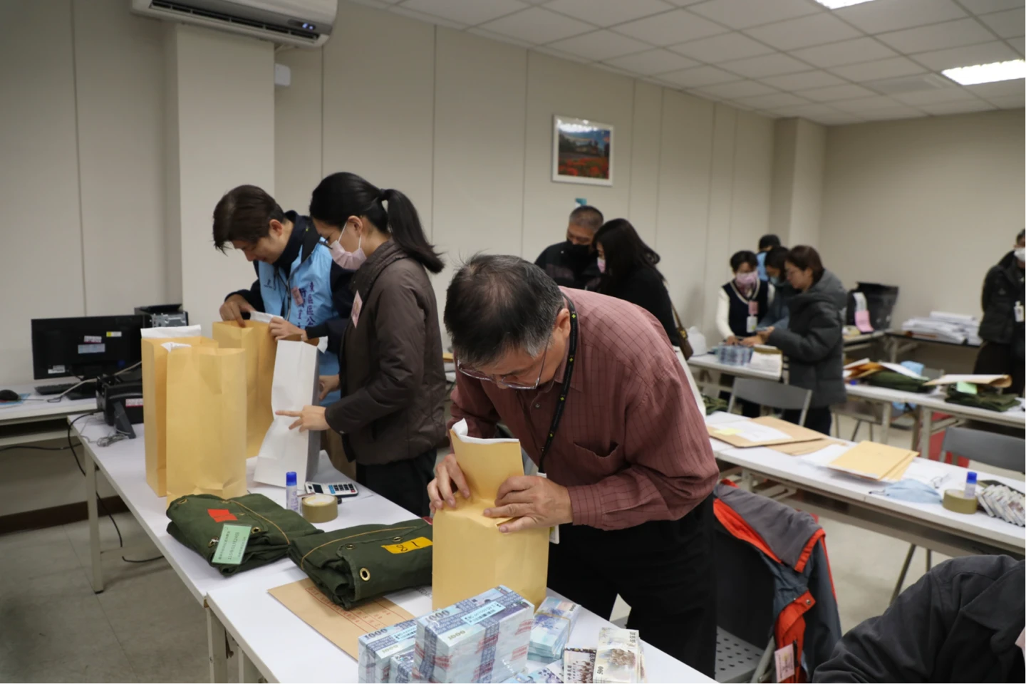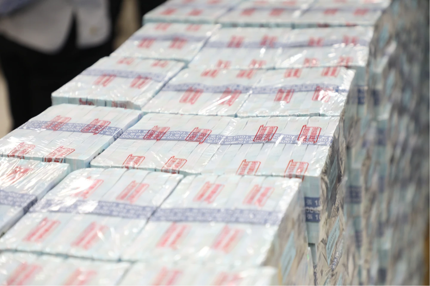 22日點交現場,一疊疊藍紫色千元大鈔堆疊如山,嘉義市長黃敏惠逐一檢視裝箱作業,並慰問辛勞的銀行同仁。這整牆總額超過15億元的現鈔,不僅是給市民的春節賀禮,更展現了嘉義市蟬聯15年未舉債、公共債務連7年歸零的傲人「理財」成績。