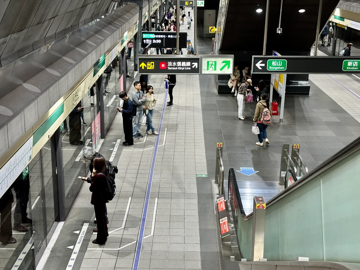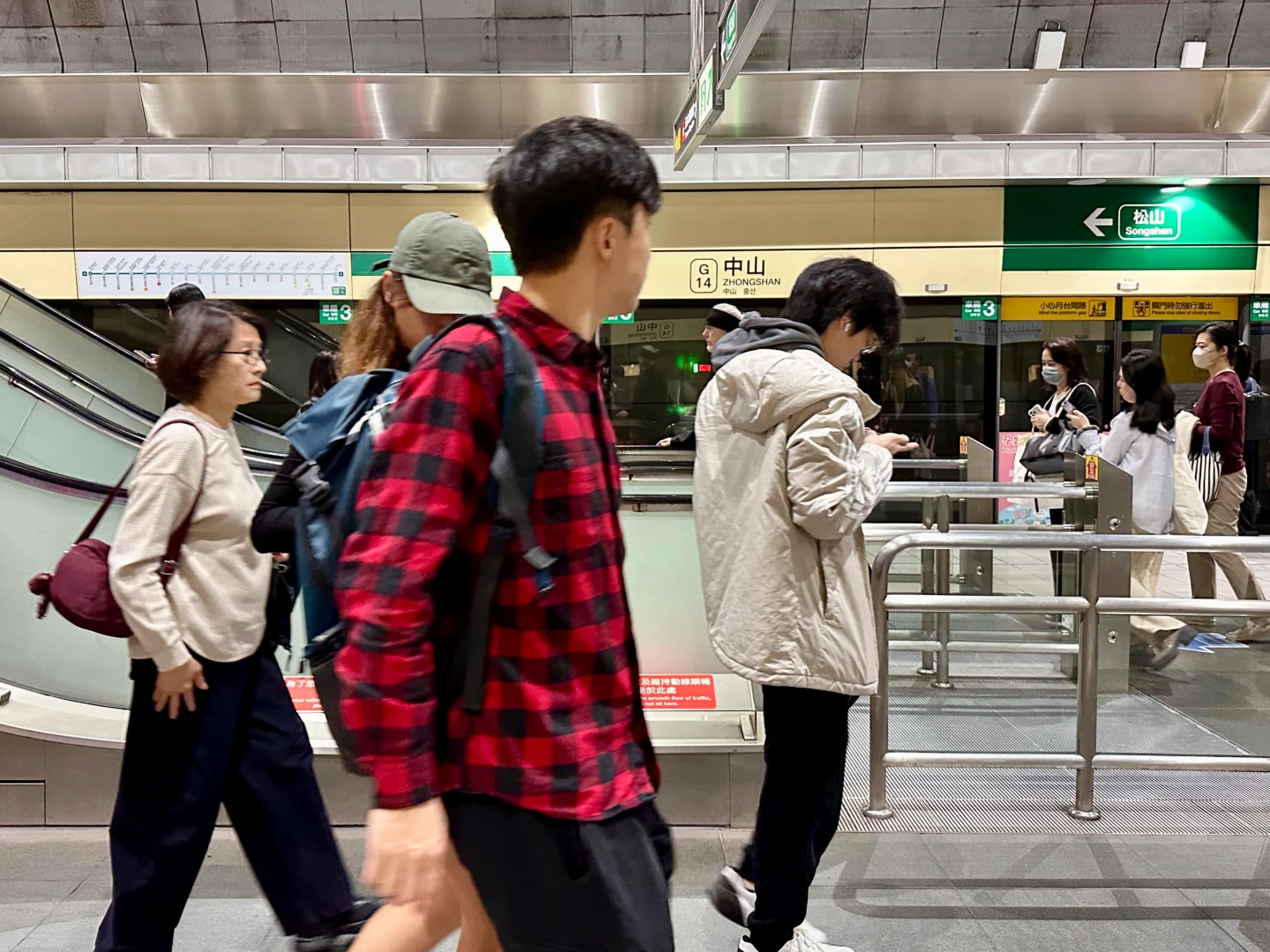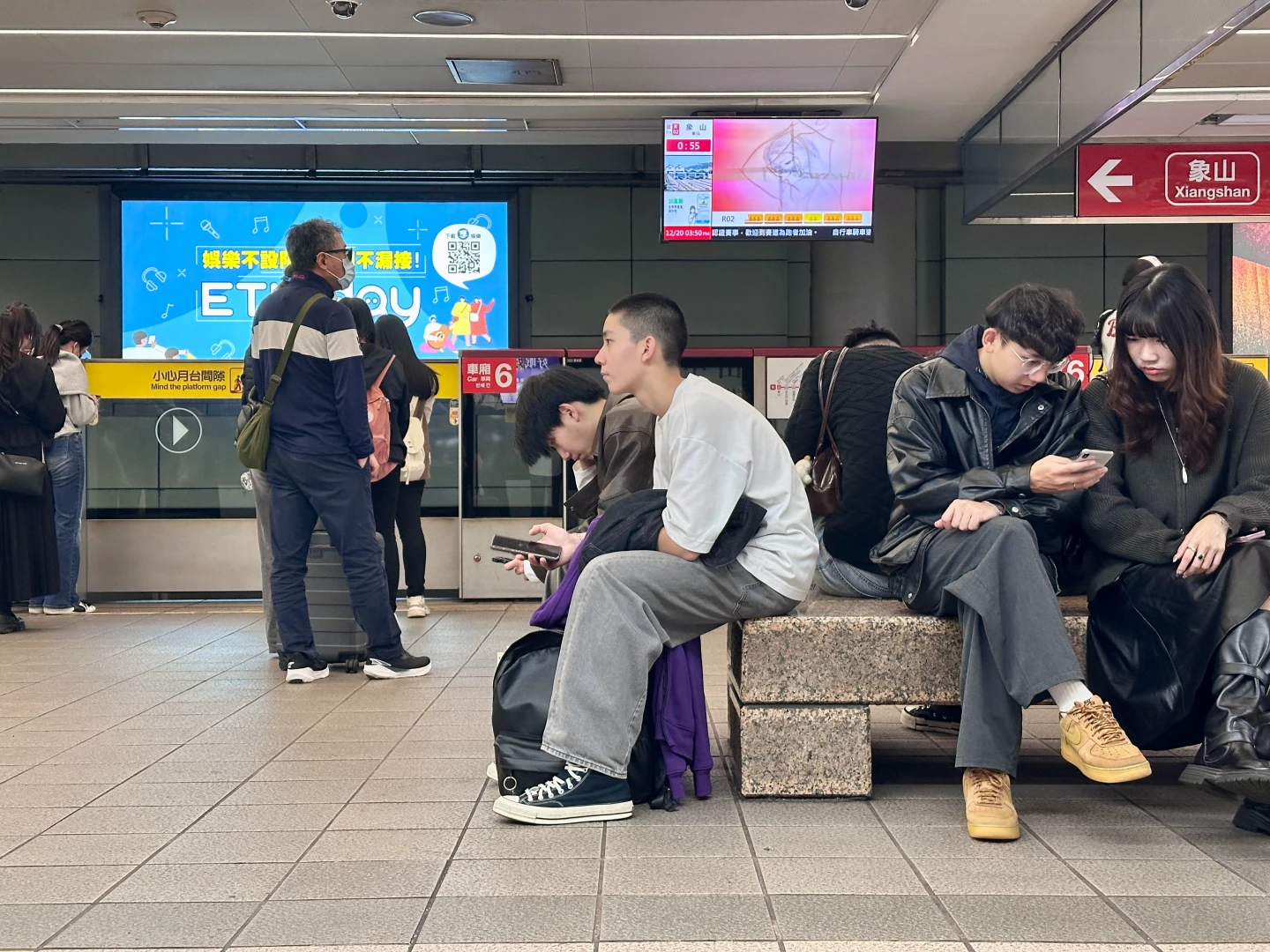 記者今天觀察,北捷人潮並未明顯減少,但低頭滑手機的民眾略為減少,而捷運站內也不時可見到警察巡邏,見警率有所提升。