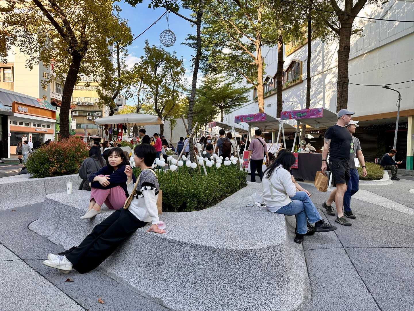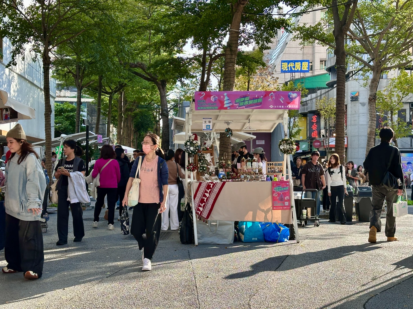 實際觀察,中山商圈附近許多民眾一邊逛街,一邊聊著昨夜震驚社會的砍殺事件,但仍愜意逛著市集攤位、購買飲料,或與電影宣傳用的大型耶誕樹合影,享受著冬日溫暖陽光。
